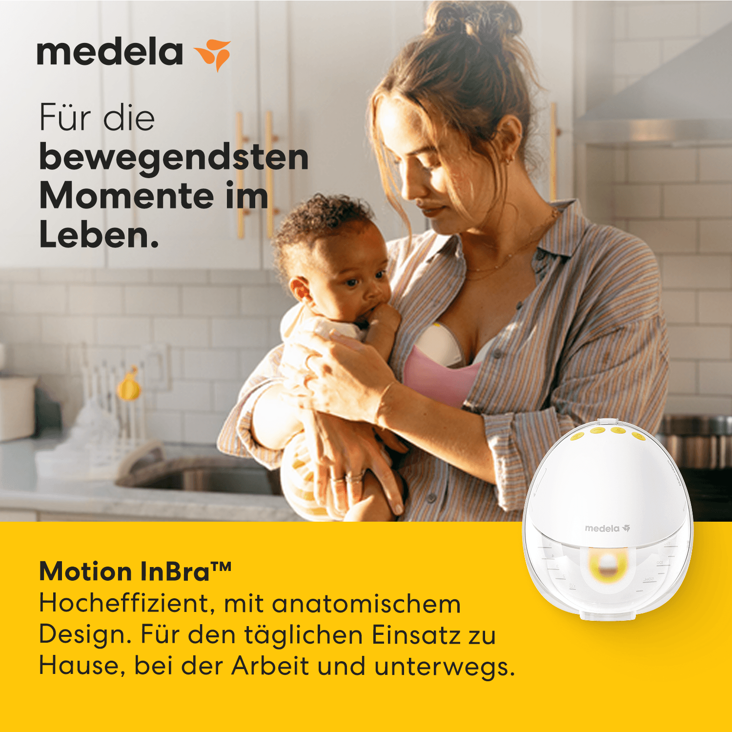 Hocheffizient und anatomisch gestaltet. Für den täglichen Einsatz zu Hause, bei der Arbeit und unterwegs. Motion InBra™ ist eine hocheffiziente, tragbare Milchpumpe, die vollständig und diskret in deinen BH passt. Sie wurde entwickelt für zuverlässige Leistung, hohen Komfort und diskretes, unkompliziertes Abpumpen. Ideal für den Alltag zu Hause, im Job und unterwegs. Für starke Ergebnisse den ganzen Tag, jeden Tag. Gewinne schneller mehr Milch dank unserer bewährten 2-Phase- Expression Technologie, die den natürlichen Saugrhythmus des Babys nachahmt, und den Brusthauben mit 105° Öffnungswinkel, für nachweislich bis zu 11,8 % mehr Milch abpumpen kannst. *