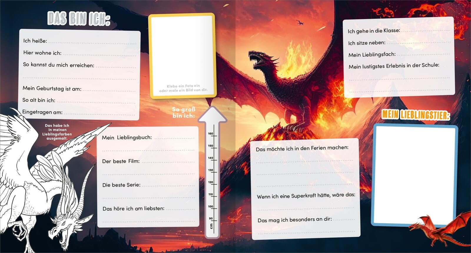 Das ideale Freundebuch für Fans von Drachen– mit tollen BIldern und viel Platz zum Eintragen und Malen.