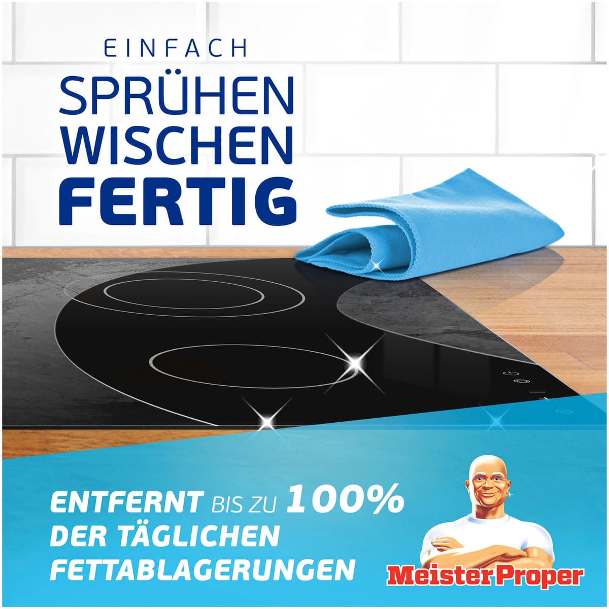 Das Meister Proper Sprühen-Wischen-Fertig Reinigungsspray wird die Art und Weise verändern, wie Sie Ihre Oberflächen reinigen! Einfach überall aufsprühen, darüberwischen und fertig! So einfach ist das! Es entfernt Fett auf Ihren Oberflächen sofort und ohne zusätzliche Schritte - kein Schrubben, keine Streifen. Es lässt nichts zurück außer strahlende Sauberkeit und hellen Glanz. Es kann sicher auf Oberflächen mit Lebensmittelkontakt verwendet werden und hinterlässt keine aggressiven Rückstände. Erhältlich mit einem herrlichen Orangen-Duft. Oberflächen, die direkt mit Lebensmitteln in Kontakt kommen, nach der Reinigung abspülen.