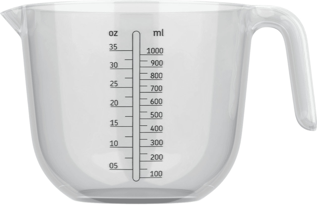Der Messbecher aus Polypropylen dient zur genauen Abmessung von Zutaten und Flüssigkeiten.