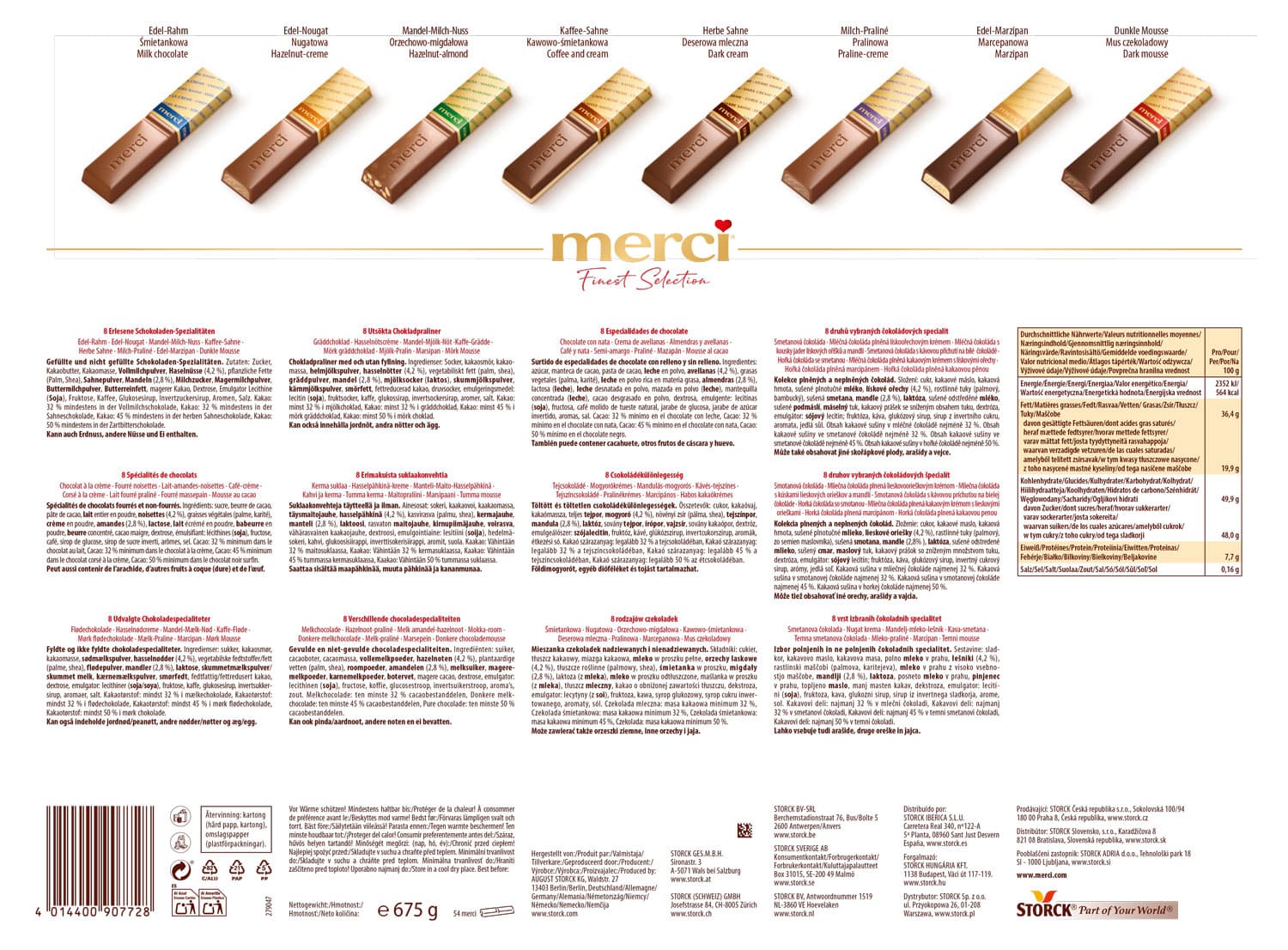 • merci Finest Selection Große Vielfalt begeistert mit den Sorten feinster Edel-Rahm, Kaffee-Sahne, Mandel-Milch-Nuss, Edel-Nougat, Edel-Marzipan, Herbe Sahne, Dunkle Mousse und Milch-Praliné
