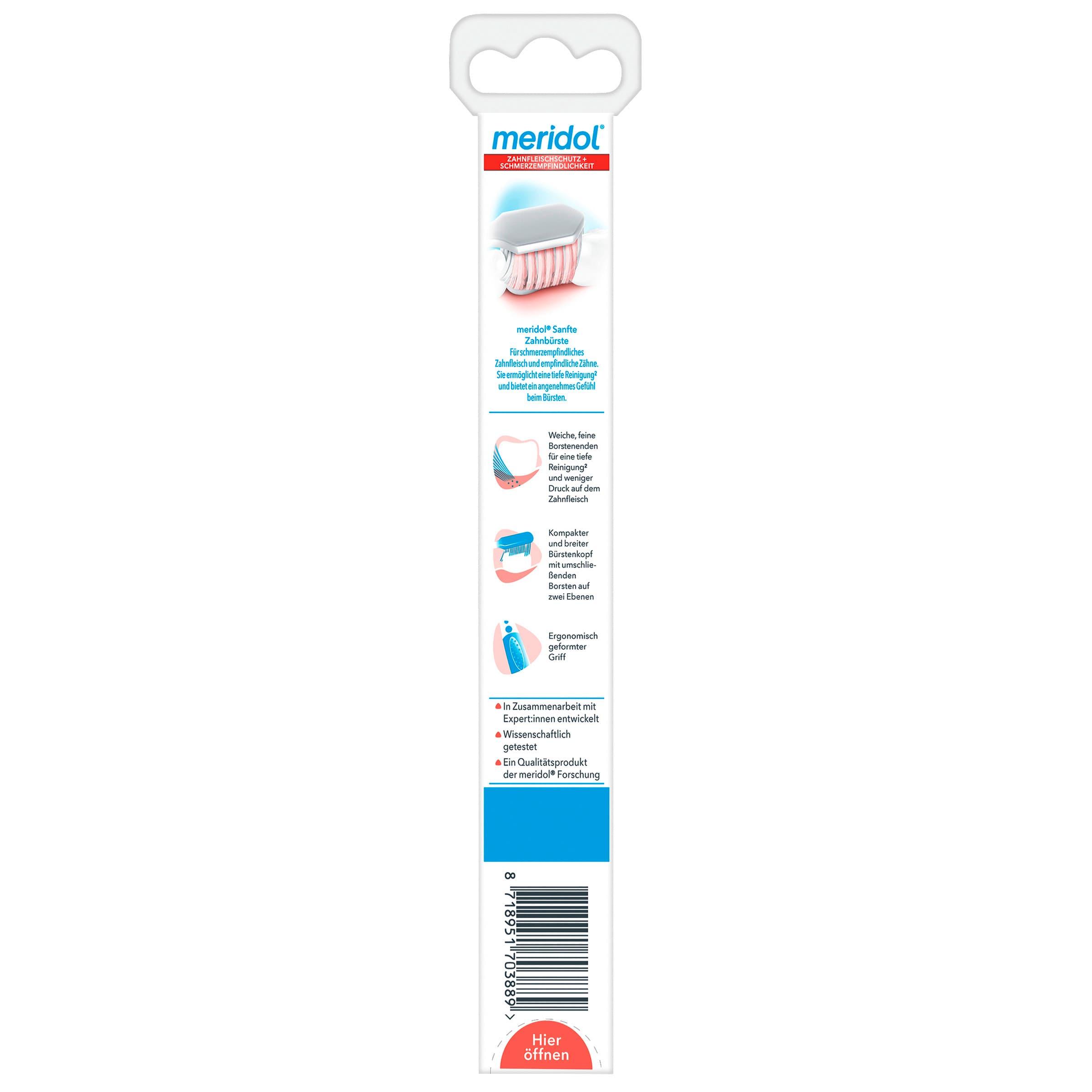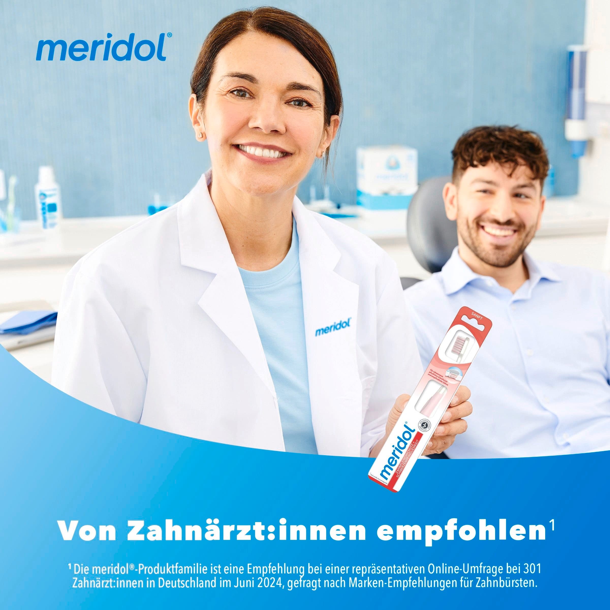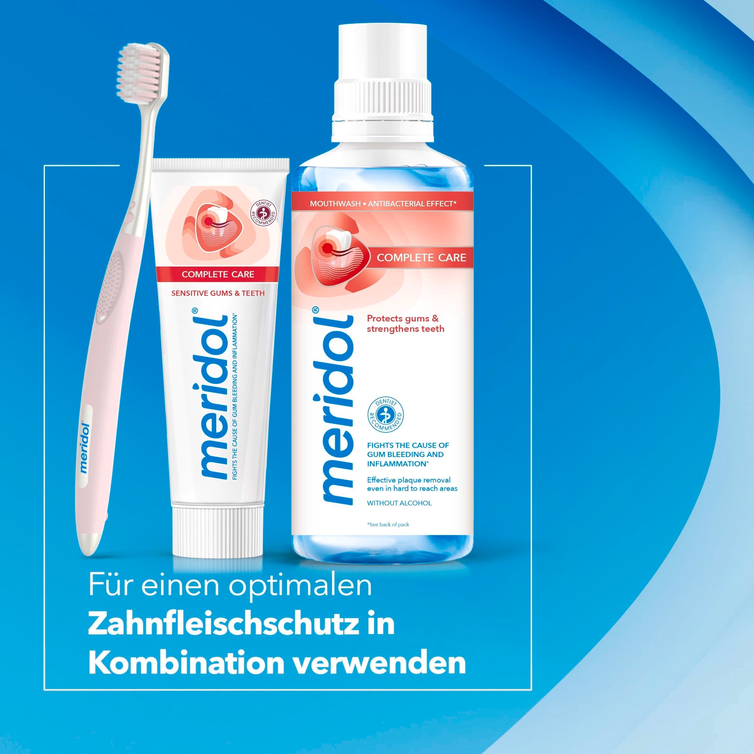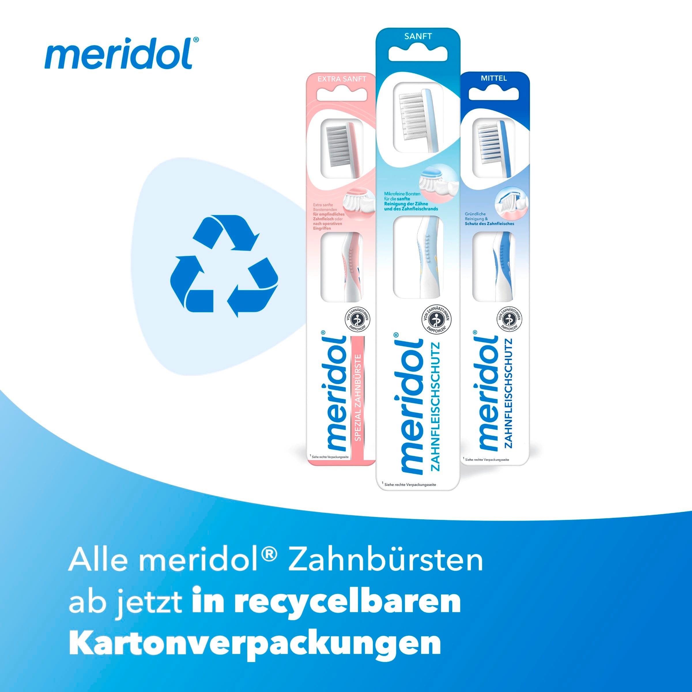 Die Meridol Complete Care Zahnbürste Regular wurde für die tägliche Reinigung bei schmerzempfindlichen Zähnen und sensiblem Zahnfleisch konzipiert. Sie ermöglicht eine gründliche und zugleich sanfte Pflege.
