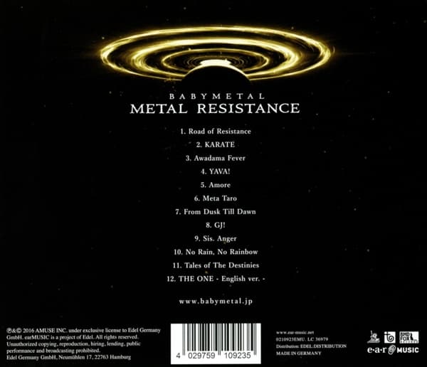 | 5 | Babymetal | Amore | 00:04:41 | |