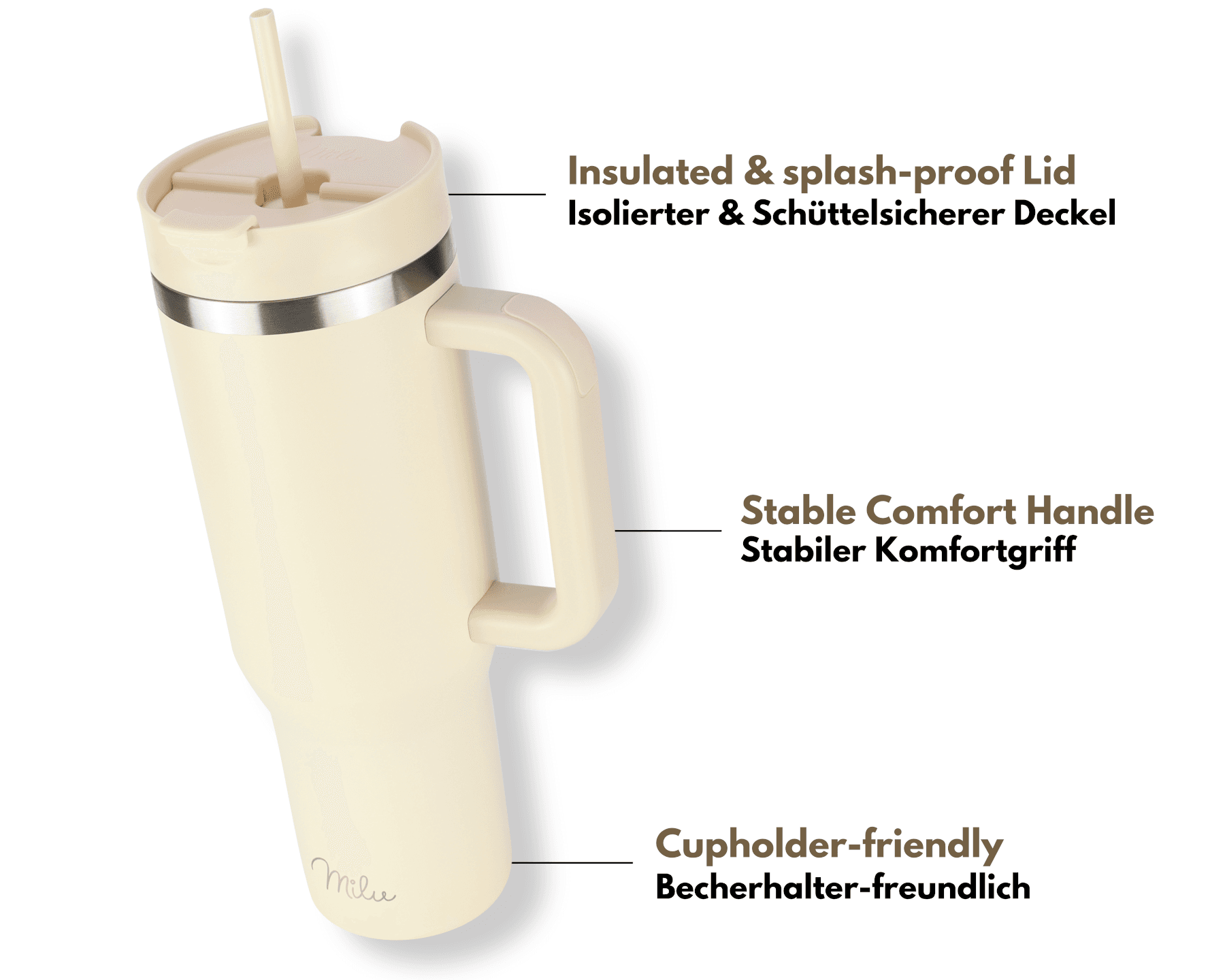 Entdecke den perfekten Begleiter für unterwegs – unser formschönes Milu Isolierbecher To Go- Set mit Trinkhalm. Ideal für deine Lieblingsgetränke. Dieser praktische auslaufsichere Trinkbecher hält alles kühl, frisch oder warm. Ideal um deine Flüssigkeitsziele zu erreichen.