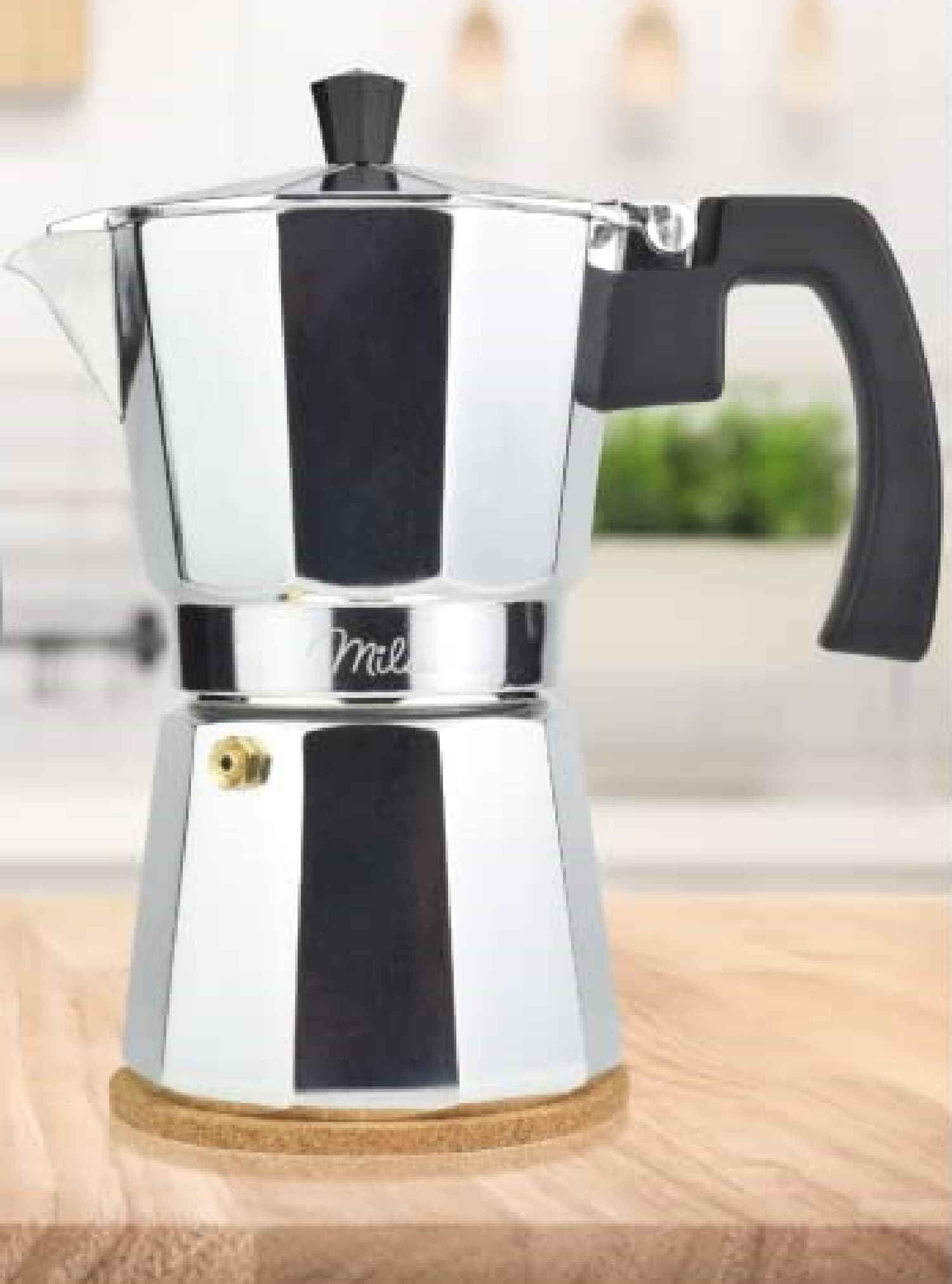 Kaffeearoma spüren – ein Ritual für Ihre Seele. Duft- und Genussmomente mit jeder Tasse neu zelebrieren. Milu Premiumqualität und Kaffeekompetenz aus Leidenschaft für alle Kaffeefans. Der Premium Espressokocher ganz klassisch aus Aluminium. Modernes Design, stylisch, funktionale Mehrwerte und hochwertig in der Verarbeitung – dafür steht Milu. | Immer erhalten Sie ein Milu Extra: Mitgeliefert werden hier ein schöner Aufbewahrungsbeutel für Reisen, ein natürlicher Korkuntersetzer, ein Dosierlöffel aus Edelstahl – praktisch mit Klammer für alle geöffneten Kaffeepackungen und eine passende Reinigungsbürste. Perfekt ist das Espressokocher-Set. | Köstlich und heiß – der perfekte Muntermacher für jeden Espressoliebhaber. | Der klassische Espressokocher | Geeignet für die Herdarten Gas, Elektro, Ceranherd | Aus hochwertigem Aluminium | Ergonomischer und formschöner Griff aus schwarzem hitzebeständigem Kunststoff | Die Dichtung ist aus langlebigem Silikon | Mit Sicherheitsventil | Inklusive hochwertigen Milu Extras: Aufbewahrungsbeutel, Korkuntersetzer