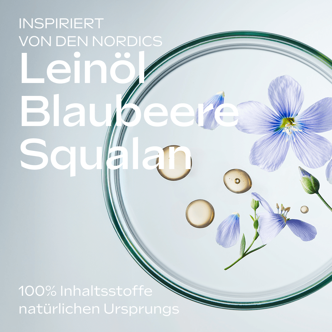 | Inhaltsstoffe | Ingredients (INCI): Water (Aqua), Aloe Barbadensis Leaf Juice+, Glycerin, Helianthus Annuus (Sunflower) Seed Oil+, Caprylic/Capric Triglyceride, Alcohol denat., Glyceryl Stearate Citrate, Betaine, Cocos Nucifera (Coconut) Oil+, Butyrospermum Parkii (Shea) Butter+, Linum Usitatissimum (Linseed) Seed Oil, Vaccinium Myrtillus Seed Oil, Tocopherol, Citric Acid, Sea Salt (Maris Sal), Carrageenan, Xanthan Gum, Squalane, Sodium Stearoyl Glutamate, Glyceryl Caprylate, Fragrance (Parfum), Beta-Caryophyllene, Geraniol, Geranyl Acetate, Lavandula Oil/Extract, Linalool, Linalyl Acetate, Pinene, Terpineol, Vanillin. [8007860007]