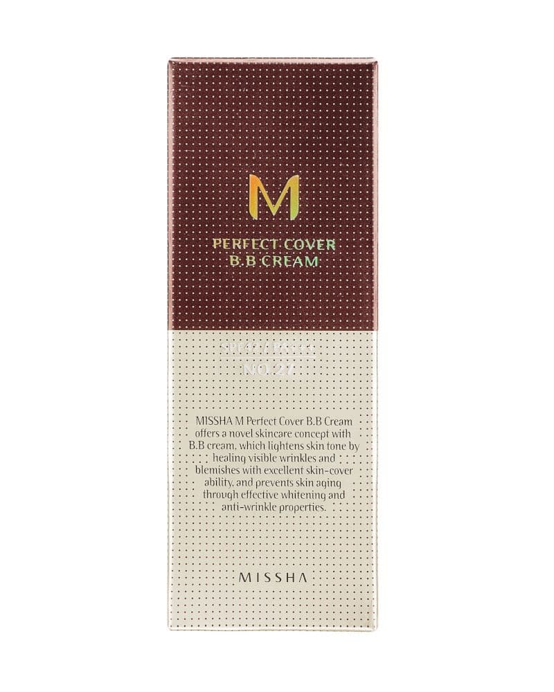 "MISSHA M Perfect Cover B.B-Creme bietet ein neues Hautpflegekonzept durch die B.B-Creme, die den Hautton aufhellt, indem sie sichtbare Falten und Mängel ausgleicht, kombiniert mit ausgezeichneten abdeckenden Fähigkeiten, und außerdem die Hautalterung durch wirksame Aufhell- und Anti-Falten-Eigenschaften verhindert. Nr. 27 (honigfarbenes Beige)Diese multifunktionale BB-Creme mit den Fähigkeiten zur UV-Filterung, Aufhellung und Faltenpflege ist das perfekte abdeckende Make-up."
