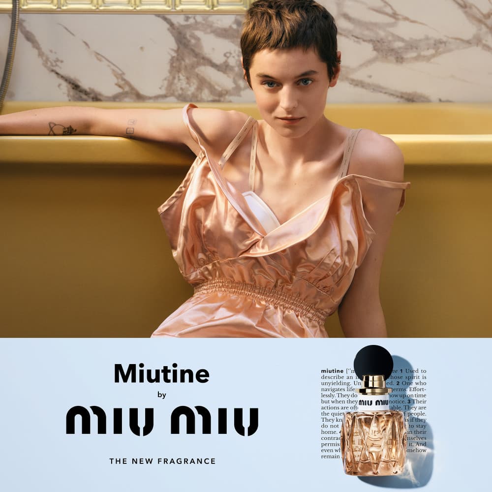 Miutine Eau de Parfum von Miu Miu ist ein kühner, verspielter und überraschender Damenduft. Inspiriert vom freigeistigen Charakter der Frau, vereint diese Komposition spritzige Walderdbeere mit einem cremigen floralen Herzen aus Gardenie und einer süßen Basis aus Vanille, braunem Zucker und Patchouliöl. Das Ergebnis ist ein chypre-gourmandiger Duft, der mit Charme und unbeschwerter Eleganz Konventionen herausfordert. Sein modern brauner Glasflakon mit gesteppter Optik, einem Hauch Retro und einem schwarzen Paillettenverschluss verkörpert den perfekten Kontrast zwischen Verspieltheit und Raffinesse. Miutine ist das olfaktorische Manifest einer Frau mit Haltung, Spontaneität und einem einzigartigen Stil.