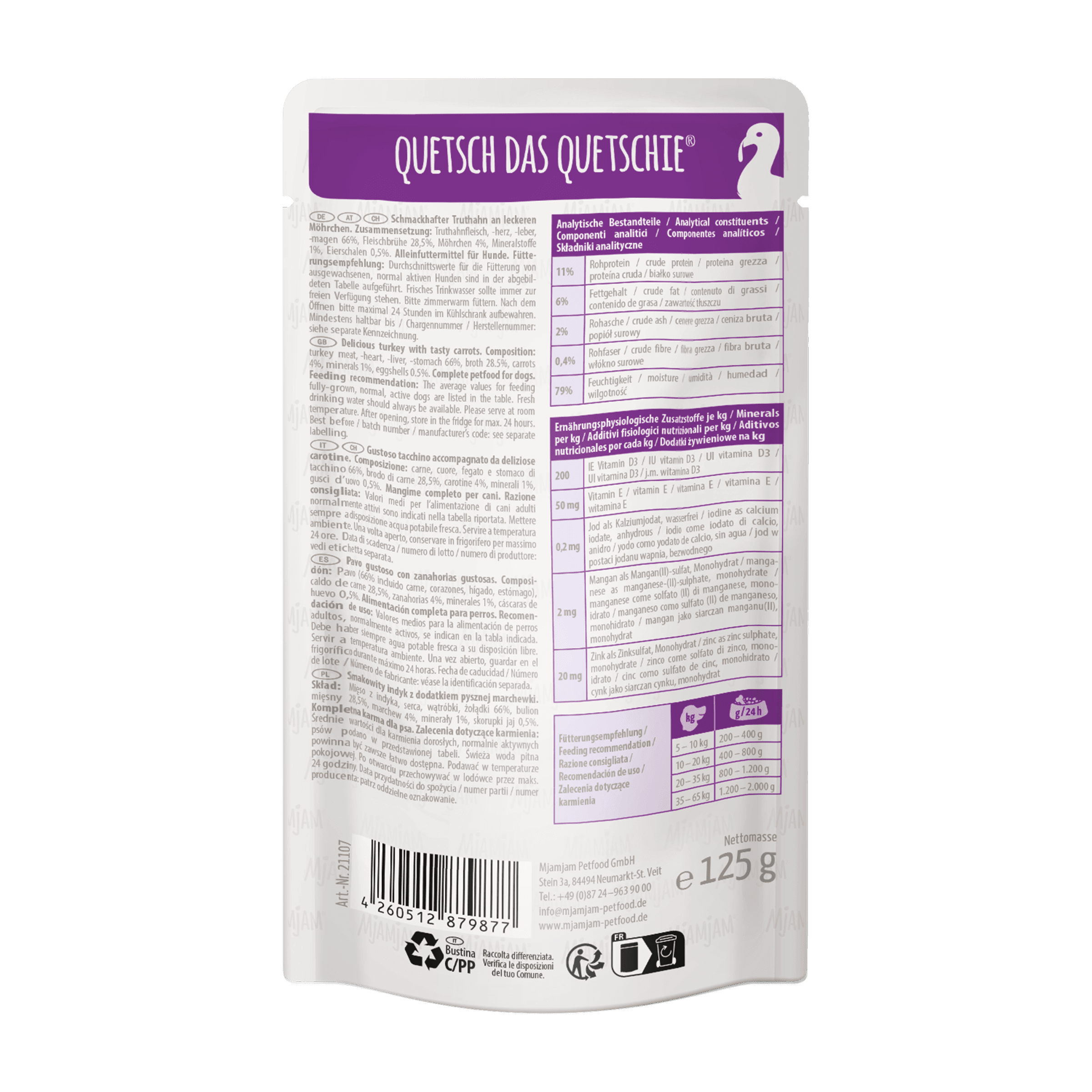 MjAMjAM Hundenassfutter Quetschie schmackhafter Truthahn an leckeren Möhrchen