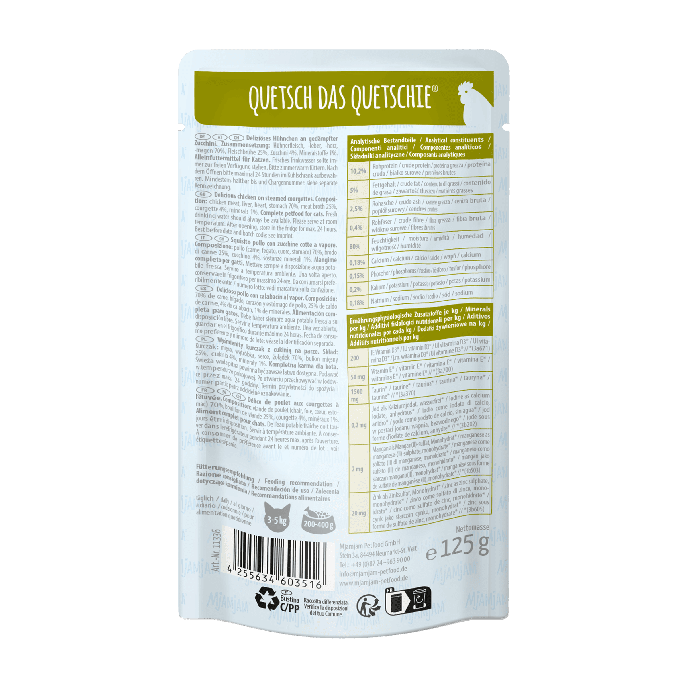 MjAMjAM Katzennassfutter Quetschie Chicks & Friends deliziöses Hühnchen an gedämpfter Zucchini