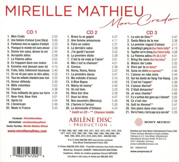 | 1 | Mathieu, Mireille | Mon credo | 00:02:52 | |