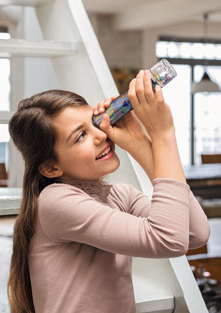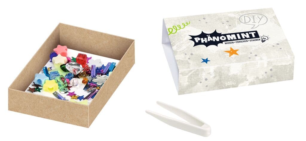 PhänoMINT – Das bedeutet: Phänomenale Experimente für neugierige Entdecker im Schulkindalter. Große Themengebiete wie Mathe, Informatik, Naturwissenschaft und Technik, werden spielerisch leicht vermittelt. Durch aktives Erleben und Experimentieren kommen die Kinder den naturwissenschaftlichen Phänomenen unseres Alltags auf die Spur – großer Aha-Effekt inklusive.Beim Blick durch ein Kaleidoskop sind viele bunte Muster zu sehen – doch wie kommen diese zustande? Mit diesem Kaleidoskop zum selber Basteln können die wissenschaftlichen Grundlagen hinter den schönen Effekten im Detail entdeckt werden. Das Set bietet alles, was man für den Bau eines Kaleidoskops braucht, inklusive farbenfroher Papiere zum Bekleben, mit denen die Pappröhre individuell gestaltet werden kann. Kinder können spielerisch ausprobieren, wie durch Spiegelung und Symmetrie die bunten Perlen und Einlegescheiben, die funkelnden Pailetten und das verspiegelte Papier im Kaleidoskop wundervolle Formen und Farben erzeugen. Spannender Bastelspaß zum Staunen – perfekt als Geschenk für neugierige Kinder und junge Forscher*innen!Inhalt:- Röhre aus Pappe- 3 transparente Aufsätze- verspiegeltes Papier- bunte Einlegescheiben- 2 farbenfrohe Papiere zum Bekleben des Kaleidoskops- viele bunte Perlen und Pailetten- 1 Pinzette aus Kunststoff- 1 Aufbewahrungsbox+ inklusive spannender Informationen zu den Prinzipien eines Kaleidoskops im Inneren der Verpackung+ aus Pappe