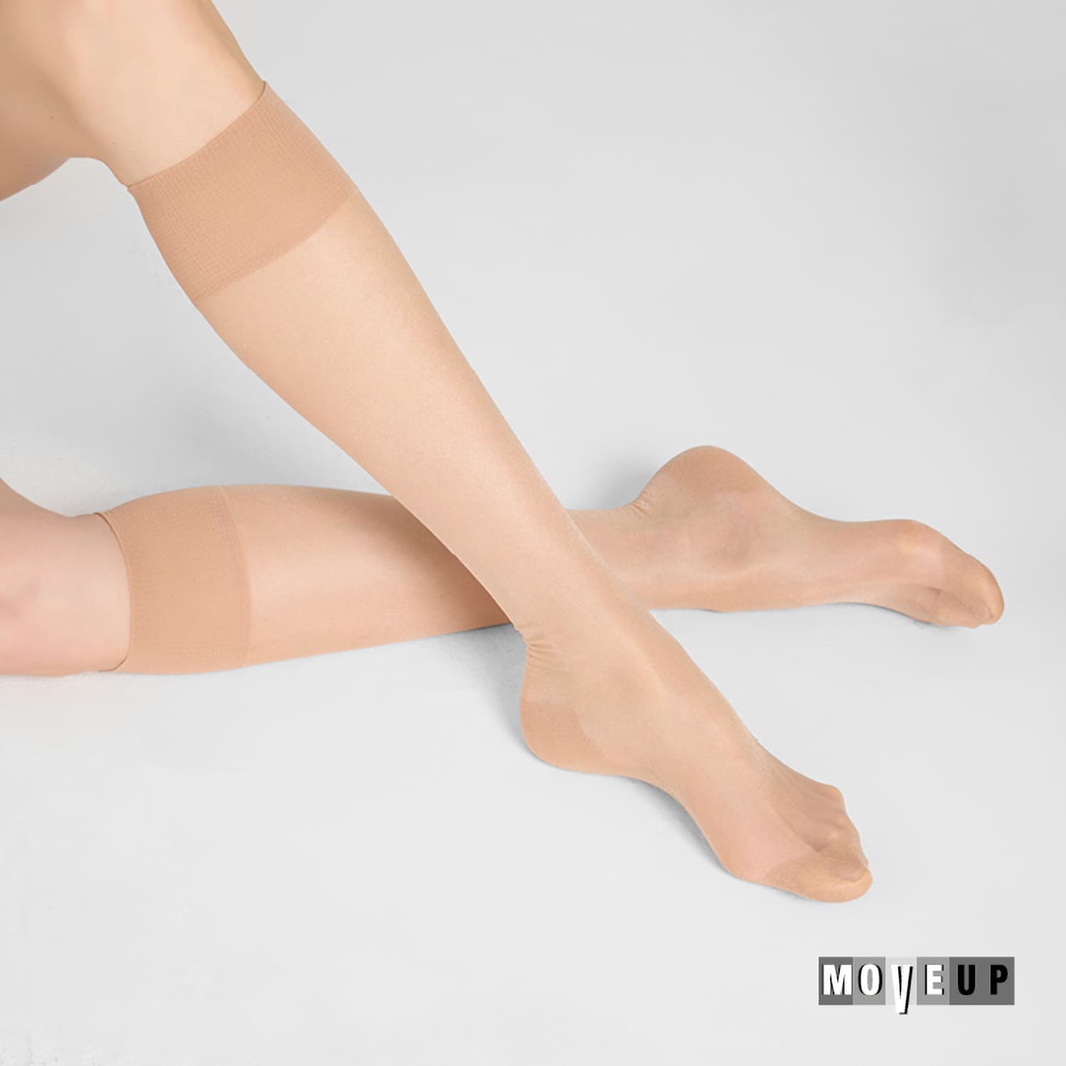 Die MOVE UP Kniestrümpfe Satin Dream 20 DEN kombinieren eine elegante Optik mit einem angenehmen Tragegefühl. Dank ihrer ultra-transparenten Beschaffenheit passen sie zu vielen verschiedenen Outfits und Anlässen.