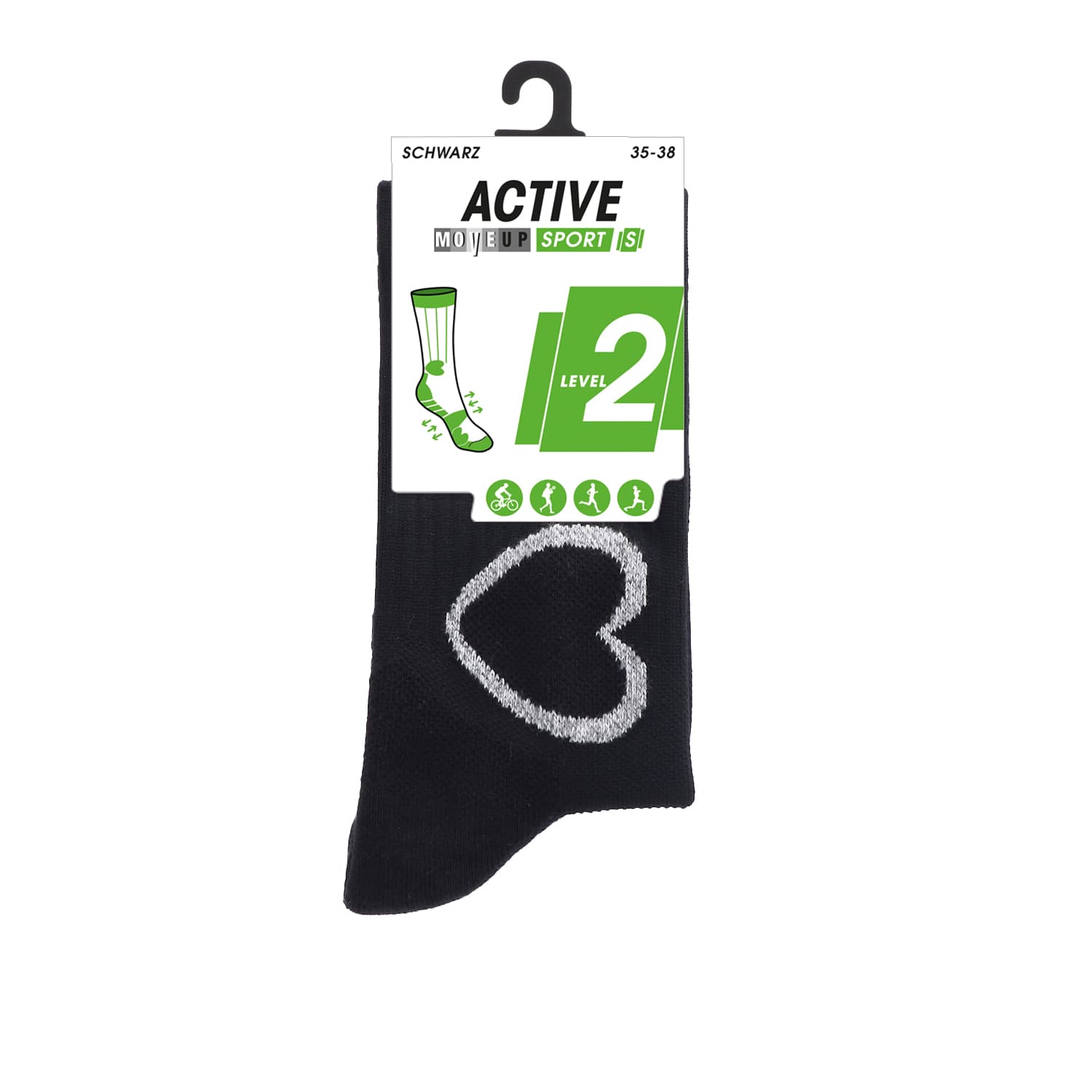 Ergonomische Sportsocke mit Knöchel- und Ballenverstärkung, Pflegeleichter Materialmix und Mesheinsätze für eine optimale Luftzirkulation, Sohlen- und Zehenplüsch zur Stoßdämpfung, Mittelfußbandage und Rippschaft für eine perfekte Passform unter Belastung.