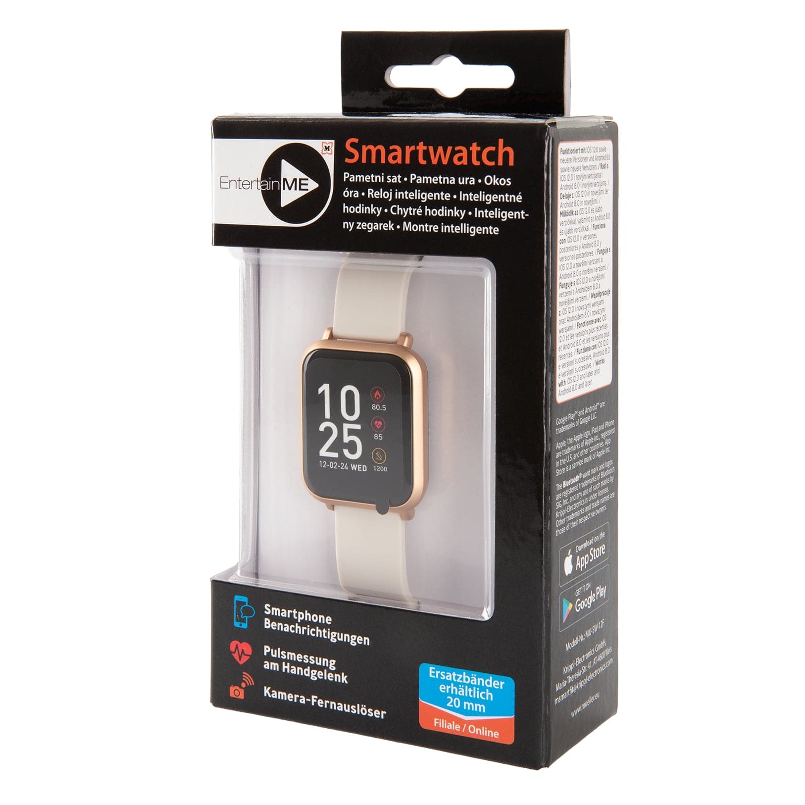 Elegant, funktional, smart. Diese wasserdichte Smartwatch von Müller kombiniert Fitness, Gesundheit und smarte Benachrichtigungen – mit stylischem Farbdisplay, Puls- und Schlaftracking sowie Bluetooth-App-Anbindung.