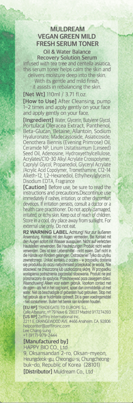 Muldream Vegan Green Mild Fresh Serum Toner