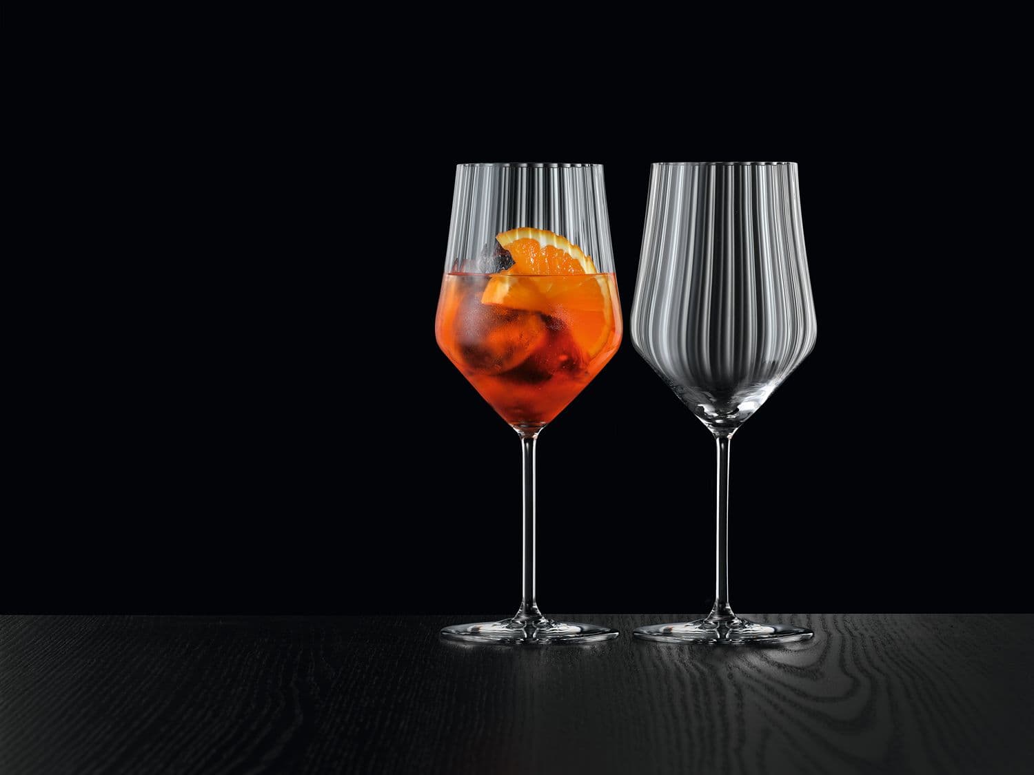 Die Kristallgläser NACHTMANN Aperitivo machen ihrem Namen alle Ehre. Denn in der Zeit zwischen Feierabend und Abendessen sind die lässig-coolen Gläser in ihrem Element. Der Drink der Stunde, serviert im passenden Spritzglas, Weinglas, Tumbler oder Longdrinkglas, wird zum funkelnden Blickfang. Dabei spielen Reflexionen, die durch die sanften Rillen im Glas erzeugt werden, mit dem Licht und bringen die Farbe des Getränks besonders gut zur Geltung. Ergänzt wird die Serie durch eine passende Schale zum Servieren von kleinen Beilagen und Knabbereien.