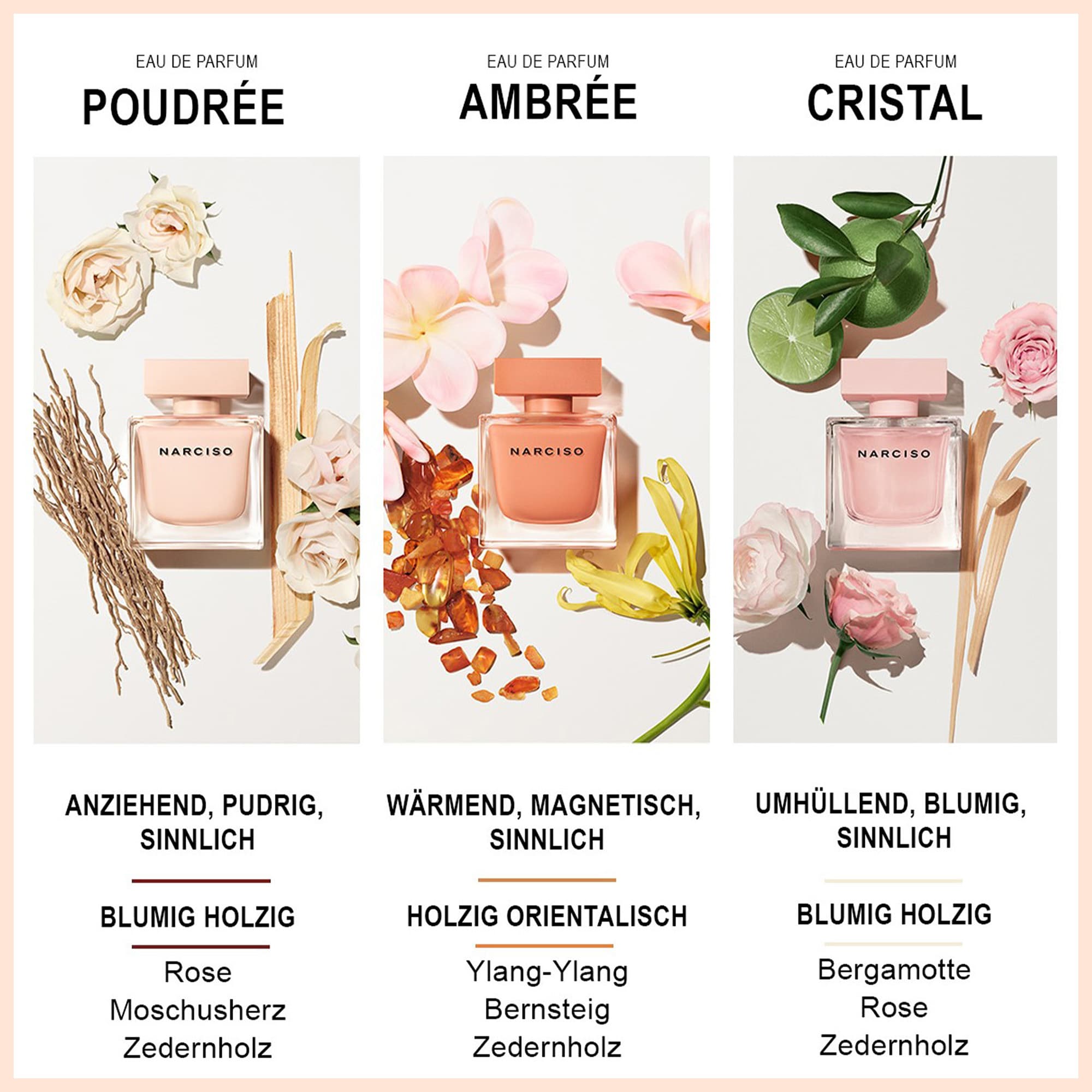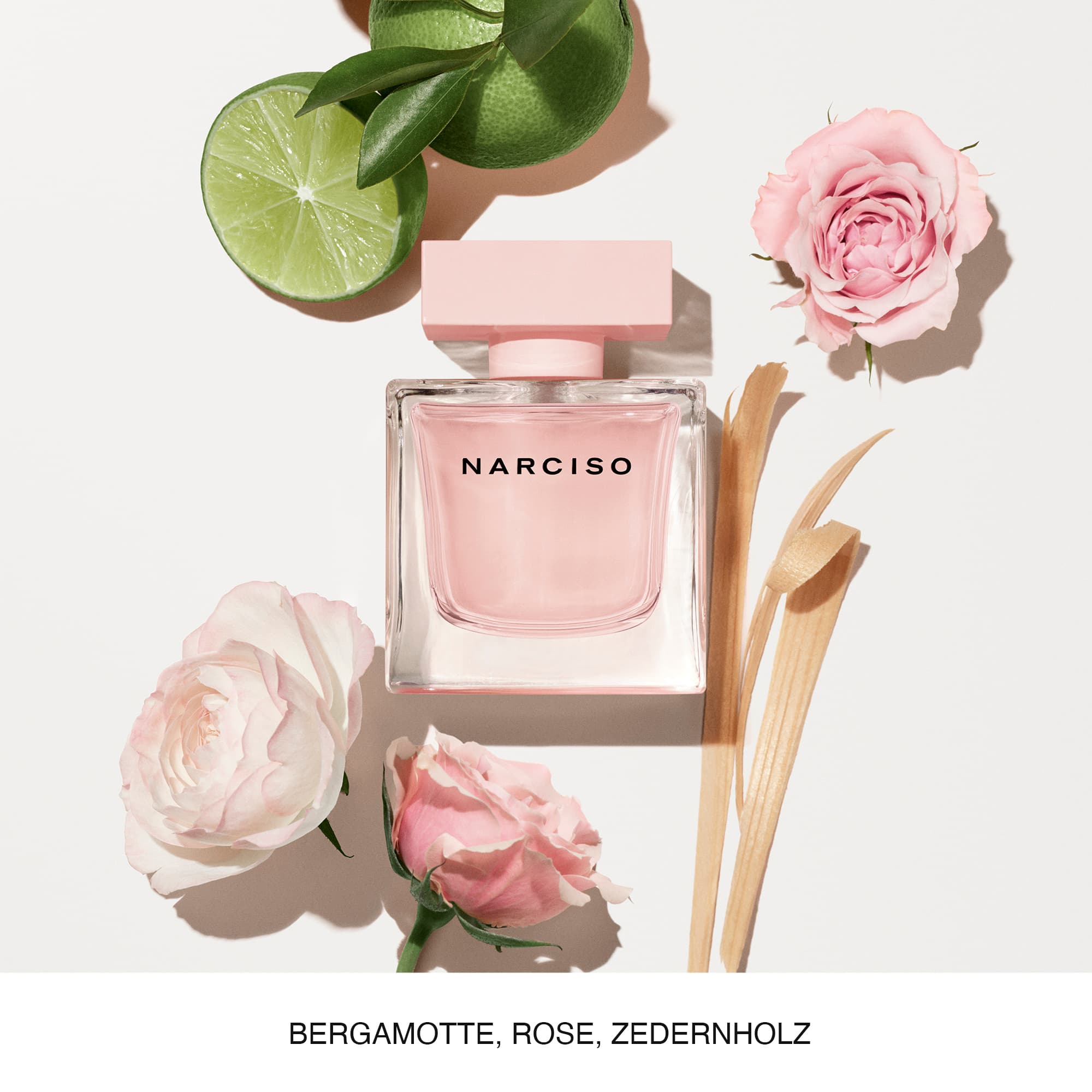 NARCISO EAU DE PARFUM CRISTAL setzt neue Maßstäbe in Sachen Natürlichkeit, denn mehr als 85 % der Inhaltsstoffe sind natürlichen Ursprungs. Mit Bergamotte, die ethisch aus Italien bezogen wird, und eine Rosennote, die durch ein neues Upcycling-Destillationsverfahren gewonnen wird, gewinnt der Duft olfaktorische Komponenten aus dem Destillationswasser zurück, um eine blumige Note zu schaffen, die an den Duft der frischen Rose erinnert.