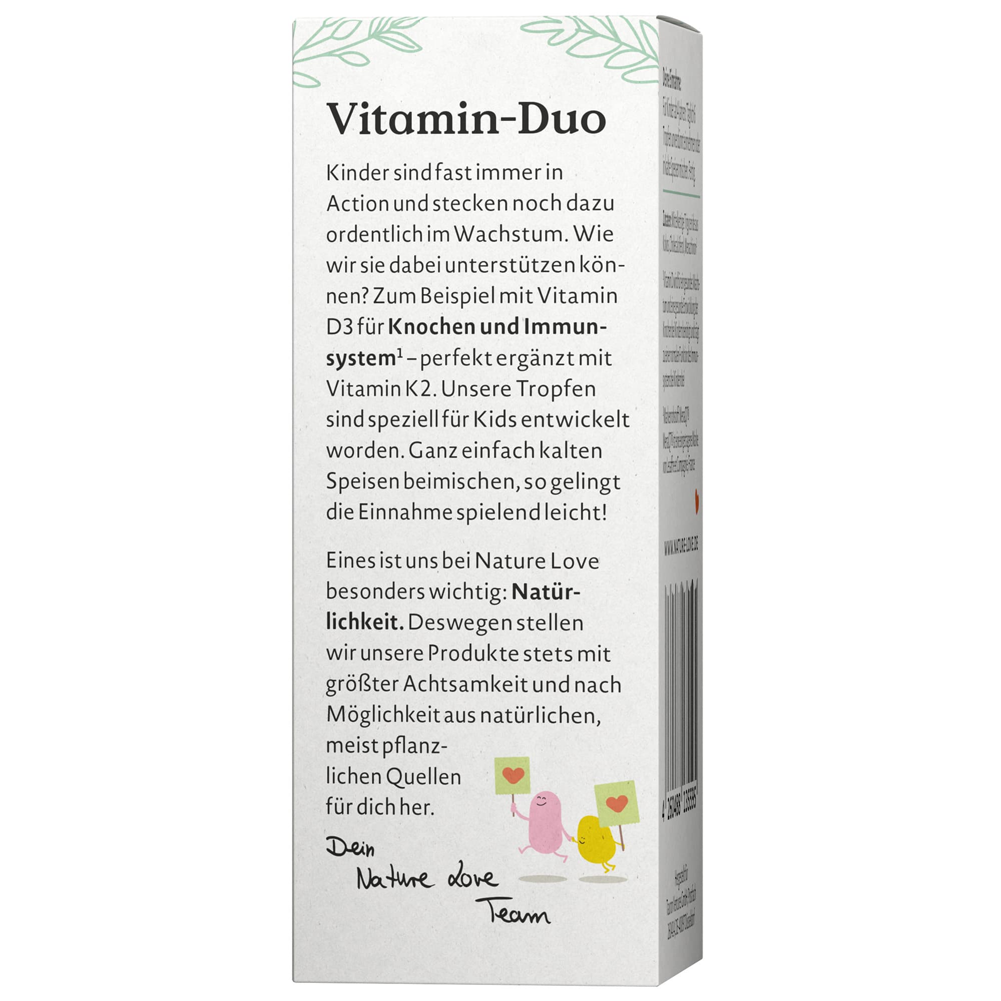 Kinder sind fast immer in Action und stecken noch dazu ordentlich im Wachstum. Wie wir sie dabei unterstützen können? Zum Beispiel mit dem Sonnenvitamin D3 für Knochen und Immunsystem¹ – perfekt ergänzt mit Vitamin K2 aus dem Markenrohstoff MenaQ7®. Unsere hoch bioverfügbaren Tropfen wurden speziell von Expertinnen und Müttern entwickelt und liebevoll auf die Bedürfnisse von Kids angepasst, deren Knochen und Immunsystem täglich dazulernen. Dazu zählt natürlich auch: Du kannst sie einfach kalten Speisen beimischen. So gelingt die Einnahme spielend leicht!
