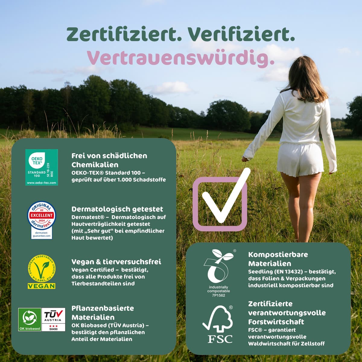 • 100% Bio-Baumwolle in direktem Kontakt mit der Haut