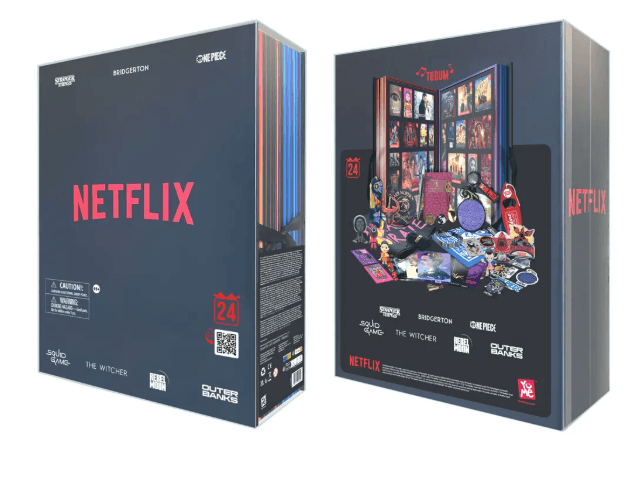 Jedes Fach der Box ist nummeriert und enthält eine Überraschung – von Figuren über Pins bis hin zu Stickern und Schlüsselanhängern. Ein integrierter Soundchip spielt beim Öffnen das ikonische „TUDUM“-Intro von Netflix und sorgt für ein cineastisches Unboxing-Erlebnis.