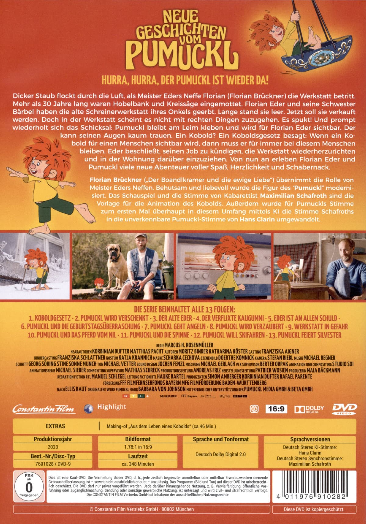 Dicker Staub flockt durch die Luft, als Meister Eders Neffe Florian (Florian Brückner) die Werkstatt betritt. Mehr als 30 Jahre lang waren Hobelbank und Kreissäge eingemottet. Florian Eder und seine Schwester Bärbel haben die alte Schreinerwerkstatt ihres Onkels geerbt. Lange stand sie leer. Jetzt soll sie verkauft werden. Doch in der Werkstatt scheint es nicht mit rechten Dingen zuzugehen. Es spukt! Und prompt wiederholt sich das Schicksal: Pumuckl bleibt am Leim kleben und wird für Florian Eder sichtbar. Der kann seinen Augen kaum trauen. Ein Kobold? Ein Koboldsgesetz besagt: Wenn ein Kobold für einen Menschen sichtbar wird, dann muss er für immer bei diesem Menschen bleiben. Eder beschließt, seinen Job zu kündigen, die Werkstatt wiederherzurichten und in der Wohnung darüber einzuziehen. Von nun an erleben Florian Eder und Pumuckl viele neue Abenteuer voller Spaß, Herzlichkeit und Schabernack.Florian Brückner ("Der Boandlkramer und die ewige Liebe") übernimmt die Rolle von Meister Eders Neffen. In weiteren Rollen spielen u.a. Milan Peschel, Frederic Linkemann, Ilse Neubauer, Katharina Thalbach und Teresa Rizos. Behutsam und liebevoll wurde die Figur des "Pumuckl" modernisiert. Das Schauspiel und die Stimme von Kabarettist Maximilian Schafroth sind die Vorlage für die Animation des Kobolds. Außerdem wurde für Pumuckls Stimme zum ersten Mal überhaupt in diesem Umfang mittels KI die Stimme Schafroths in die...