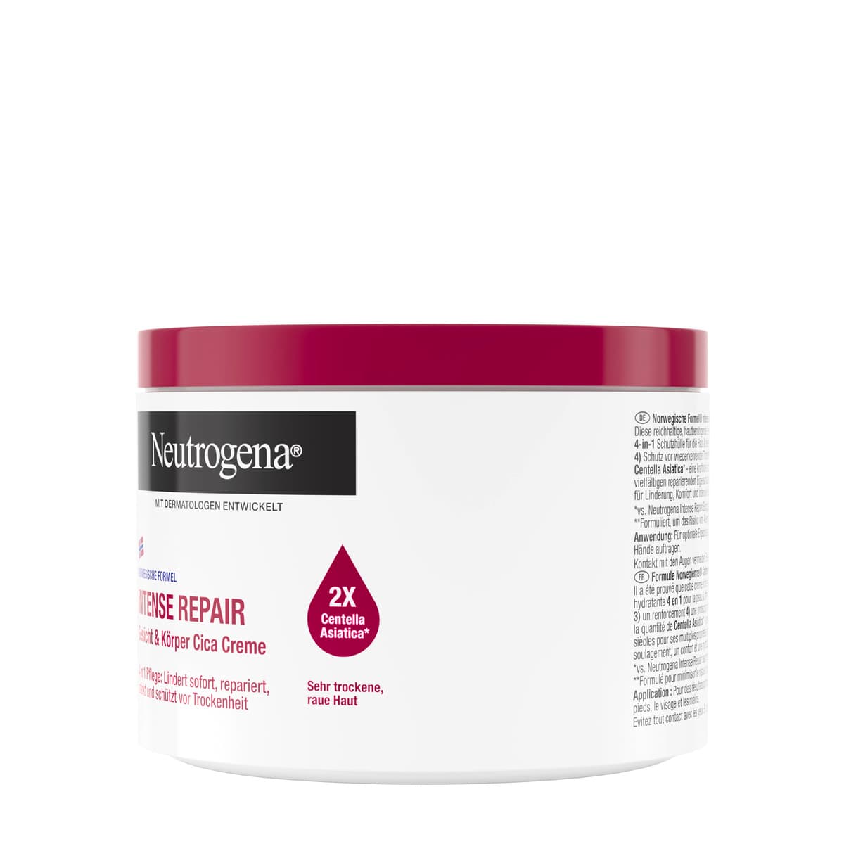 - 4-in-1 Pflege für sehr trockene Haut – Die Neutrogena Intense Repair Gesicht & Körper Cica Creme lindert sofort, repariert, stärkt und schützt die Haut vor wiederkehrender Trockenheit. Ideal für Gesicht, Hände, Füße und Körper.