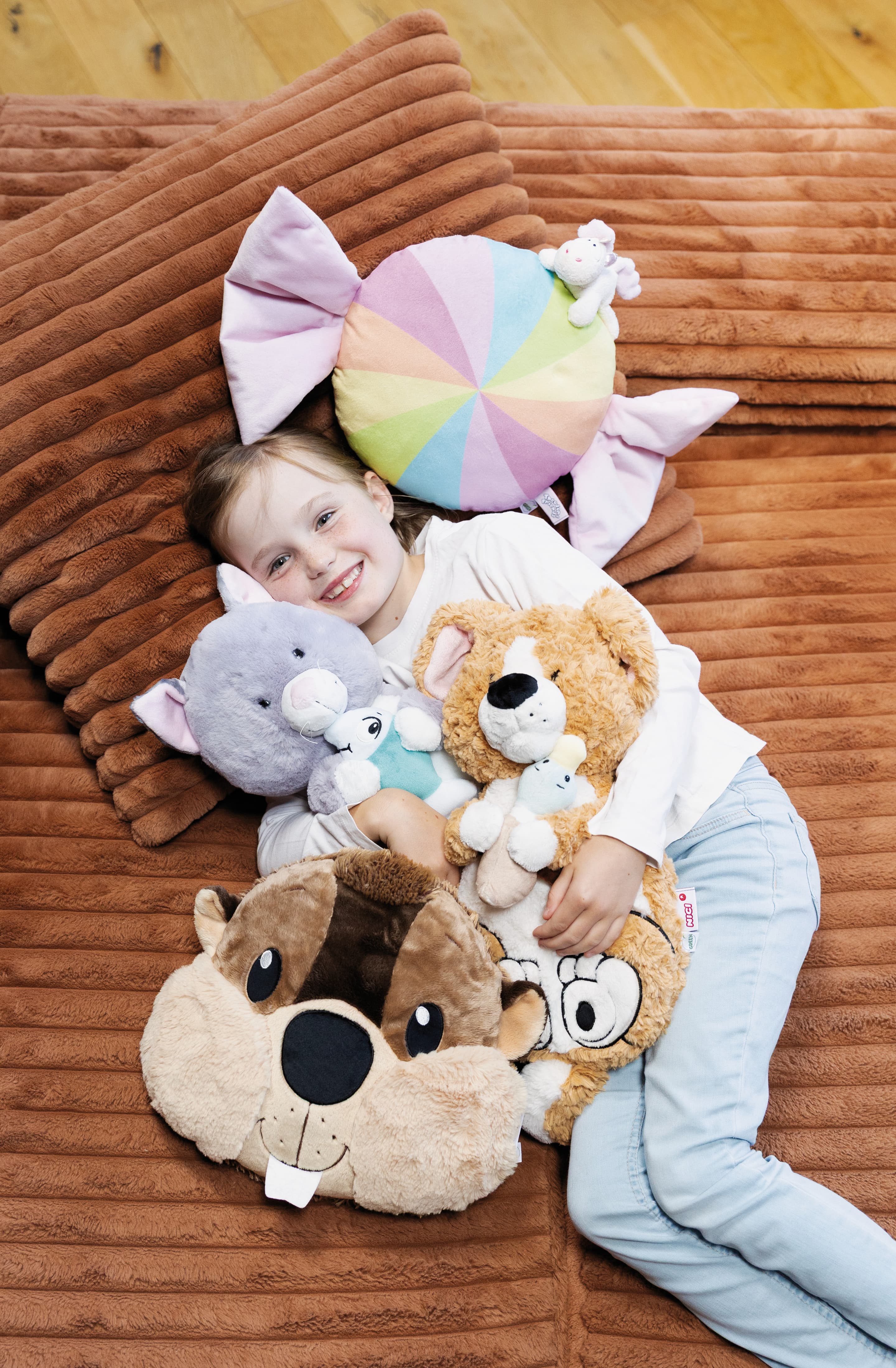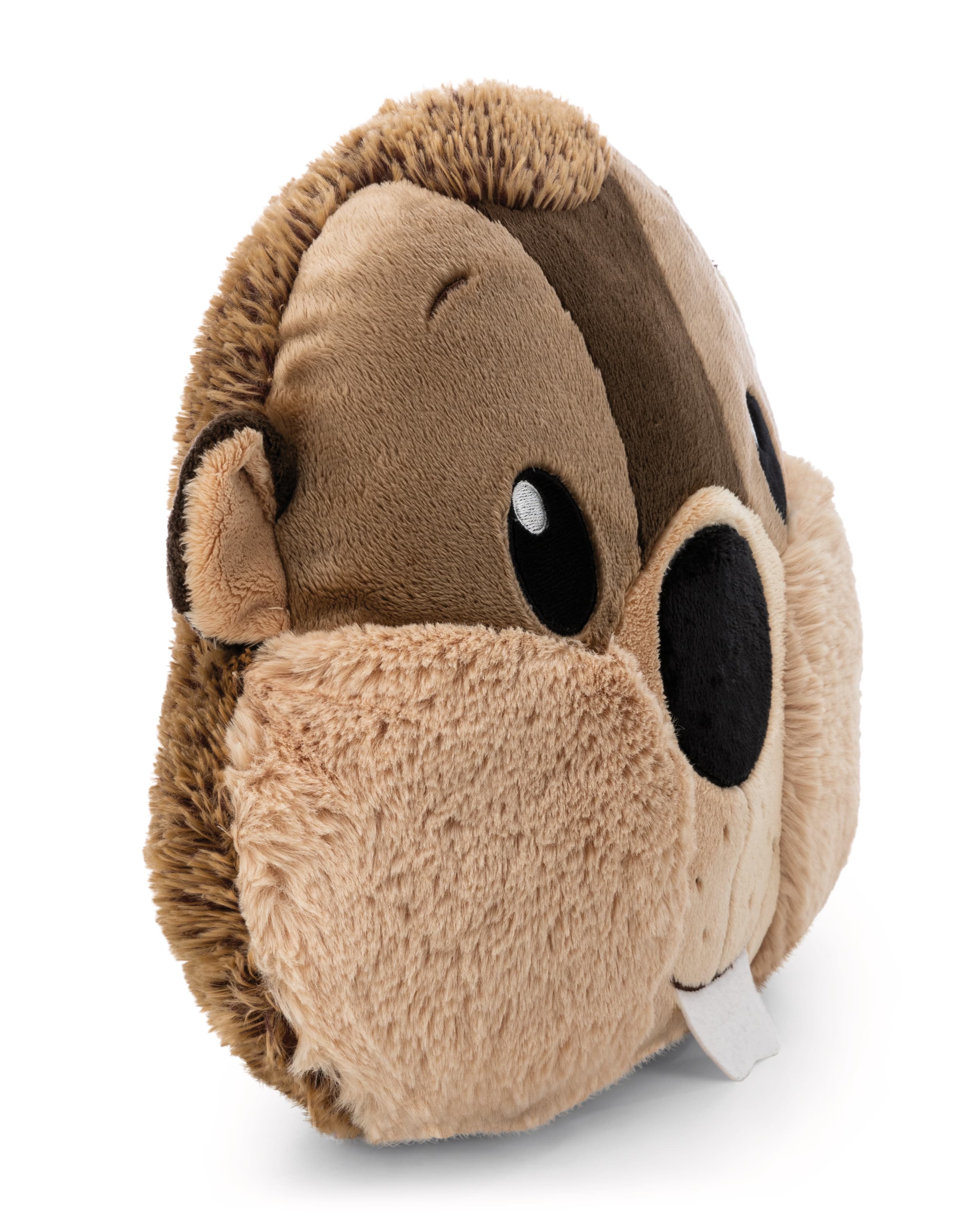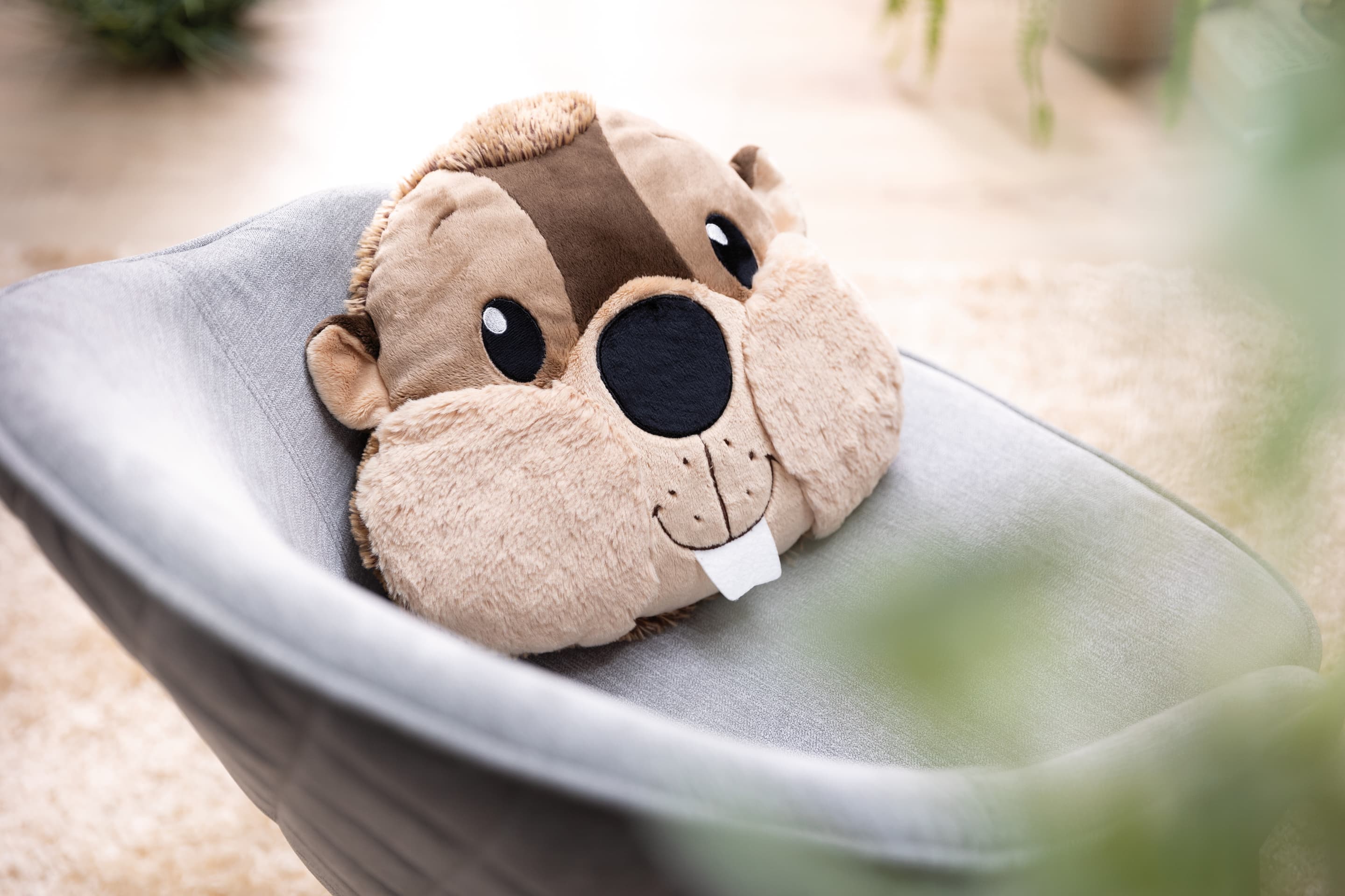 Bereit für eine Portion Spaß und Flauschigkeit in deinem Leben? Das figürliche Plüschkissen aus der Forest Friends Kollektion von NICI mit dem Kopf des Bibers Harry Woodsnacker sorgt für jede Menge Biber-Spaß! Biber Harry Woodsnacker ist nicht nur ein Kissen - er ist ein echter Freund, der mit seinem süßen Gesicht und den großen weißen Schneidezähnen jedem ein Lächeln ins Gesicht zaubert. Die lustigen Öhrchen sind das Tüpfelchen auf dem i und machen Harry zum perfekten Kuschelpartner für Groß und Klein! Mit seinen verschiedenen Plüschmaterialien fühlt er sich nicht nur toll an, sondern sorgt auch für jede Menge Gesprächsstoff - denn wer kann schon einem Biber mit so viel Charme widerstehen? Ob als Geschenk für einen lieben Menschen oder als Belohnung für sich selbst - mit dem figürlichen Kissen wird jeder Moment ein bisschen gemütlicher! Das Kissen ist Teil der NICI GREEN Produktwelt. Für NICI GREEN Produkte verwenden wir fast ausschließlich Plüsch- und Füllstoffe, die aus recycelten Materialien bestehen. Hierfür werden vor allem alte PET-Flaschen zu RPET verarbeitet.