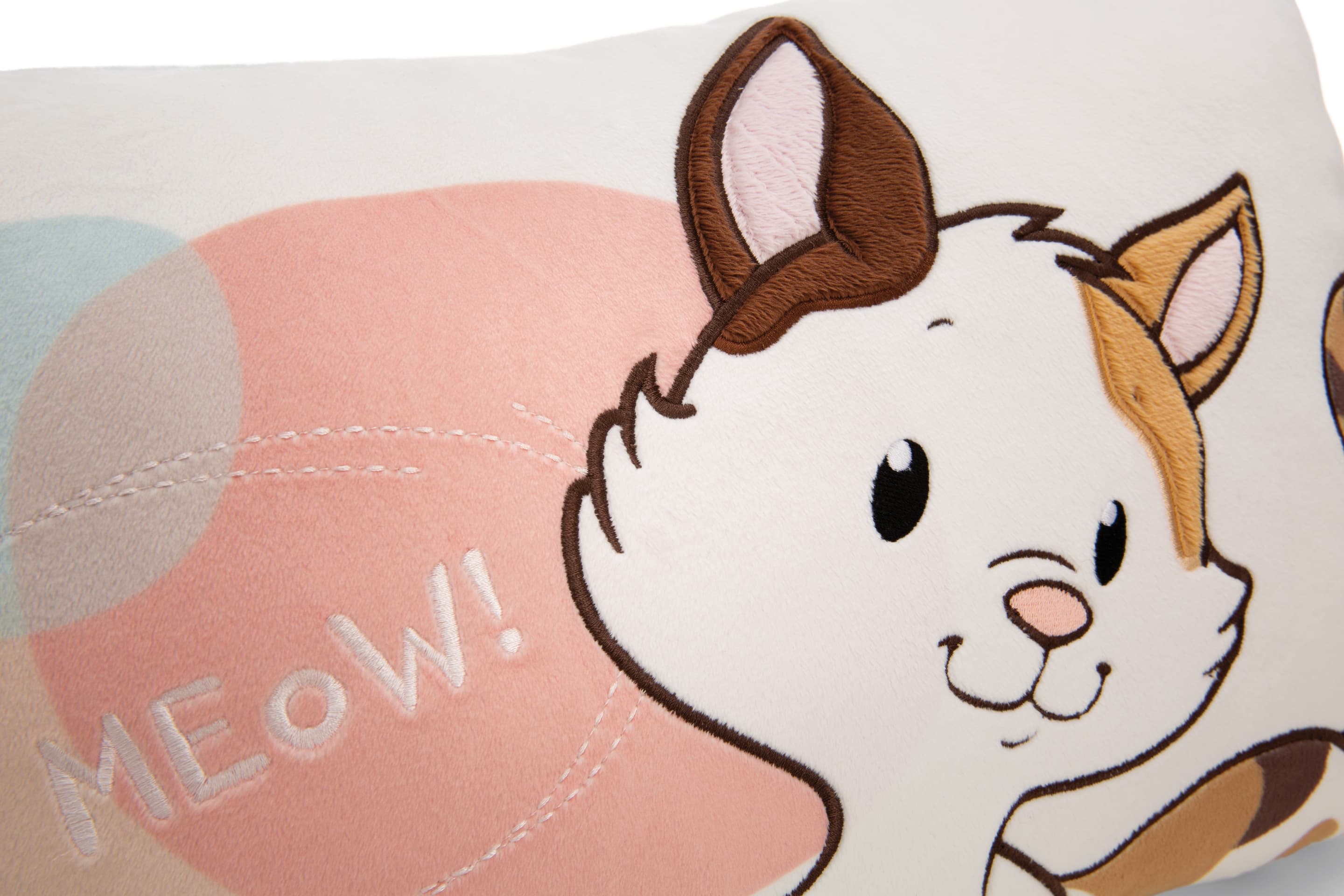 Das flauschig weiche, rechteckige Plüschkissen aus der Homies Kollektion von NICI ist nicht nur ein wunderbarer Blickfang, sondern auch ein perfekter Begleiter für alle Katzenliebhaber. Mit der fröhlichen, braun-weiß gefleckten Glückskatze und der chilligen Botschaft Meow verleiht es jedem Zuhause eine verspielte Note. Ob zum Knuddeln, Kuscheln, Schlafen, auf Reisen oder als dekoratives Home-Accessoire – dieses Kissen ist vielseitig einsetzbar und sorgt für die passende Gemütlichkeit. Die sanften Pastellfarben harmonieren wunderbar mit verschiedenen Einrichtungsstilen und zaubern eine fröhliche Atmosphäre. Egal, ob für kleine oder große Katzenfreunde, dieses Plüschkissen ist ein ideales Geschenk oder eine liebevolle Ergänzung für das eigenes Zuhause. Das Kissen ist Teil der NICI GREEN Produktwelt. Für NICI GREEN Produkte verwenden wir fast ausschließlich Plüsch- und Füllstoffe, die aus recycelten Materialien bestehen. Hierfür werden vor allem alte PET-Flaschen zu RPET verarbeitet.