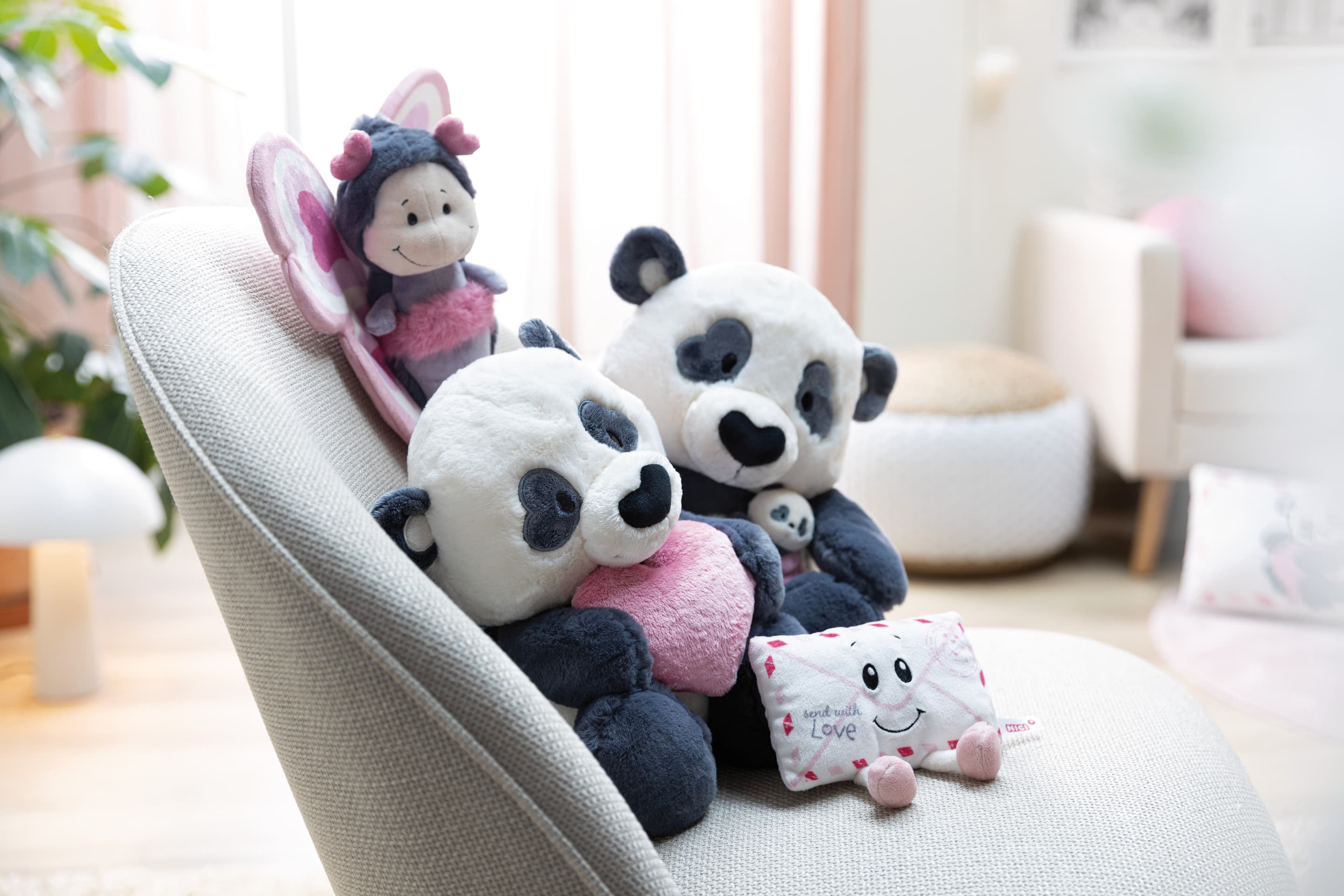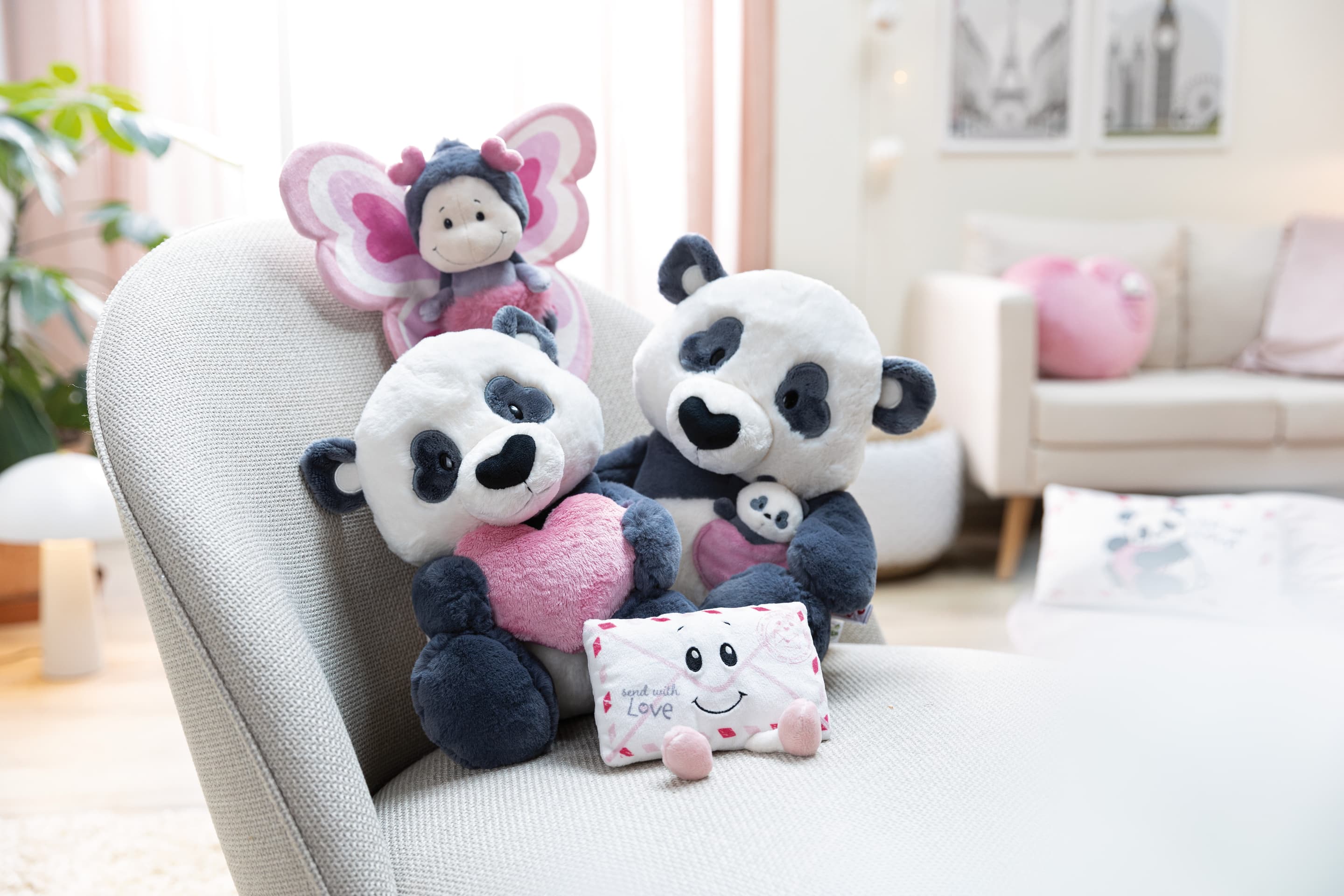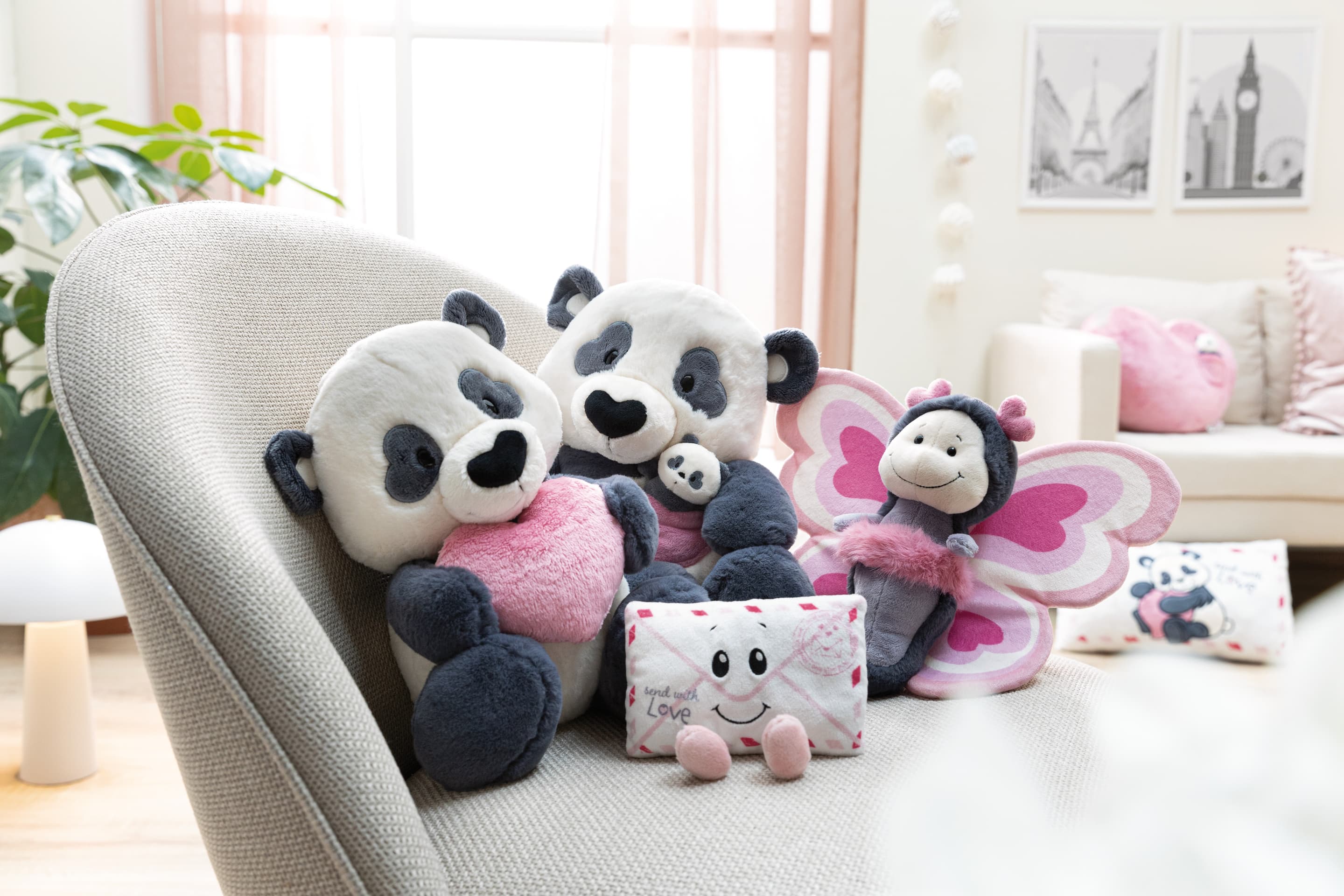 Der bezaubernde Love Panda aus der Love Classic Kollektion von NICI ist mit seinem typischen schwarz-weißen Fell aus hochwertigem, flauschig weichem NICI Plüsch ein echter Hingucker und Symbol für Liebe und Zuneigung. Mit seinem runden, weichen Körper, den herzförmig umrandeten Augen, dem süßen Gesichtsausdruck und der herzförmigen, schwarzen Nase strahlt der Panda pure Herzlichkeit und Lebensfreude aus. In seinen kleinen Händen hält er ein großes rosa Plüschherz, das seine liebevolle Botschaft perfekt unterstreicht. Ob zum Valentinstag, Geburtstag, Muttertag oder anderen besonderen Anlässen, zum Kuscheln, Einschlafen oder als Dekoration - mit diesem Panda verschenkt man ein Stückchen Liebe an Groß und Klein und macht jeden Moment zu etwas Besonderem. Der Panda ist Teil der NICI GREEN Produktwelt. Für NICI GREEN Produkte verwenden wir fast ausschließlich Plüsch- und Füllstoffe, die aus recycelten Materialien bestehen. Hierfür werden vor allem alte PET-Flaschen zu RPET verarbeitet.