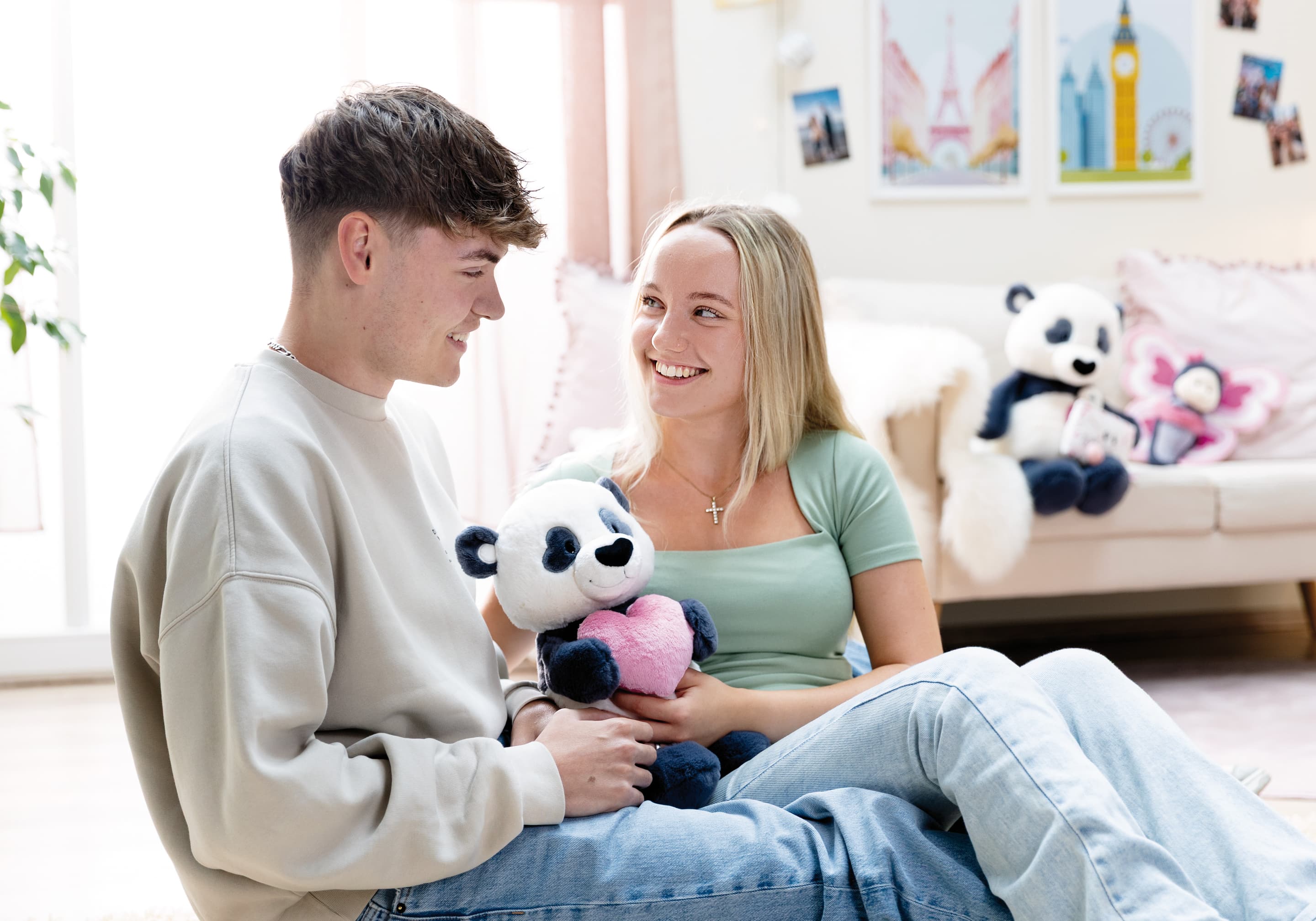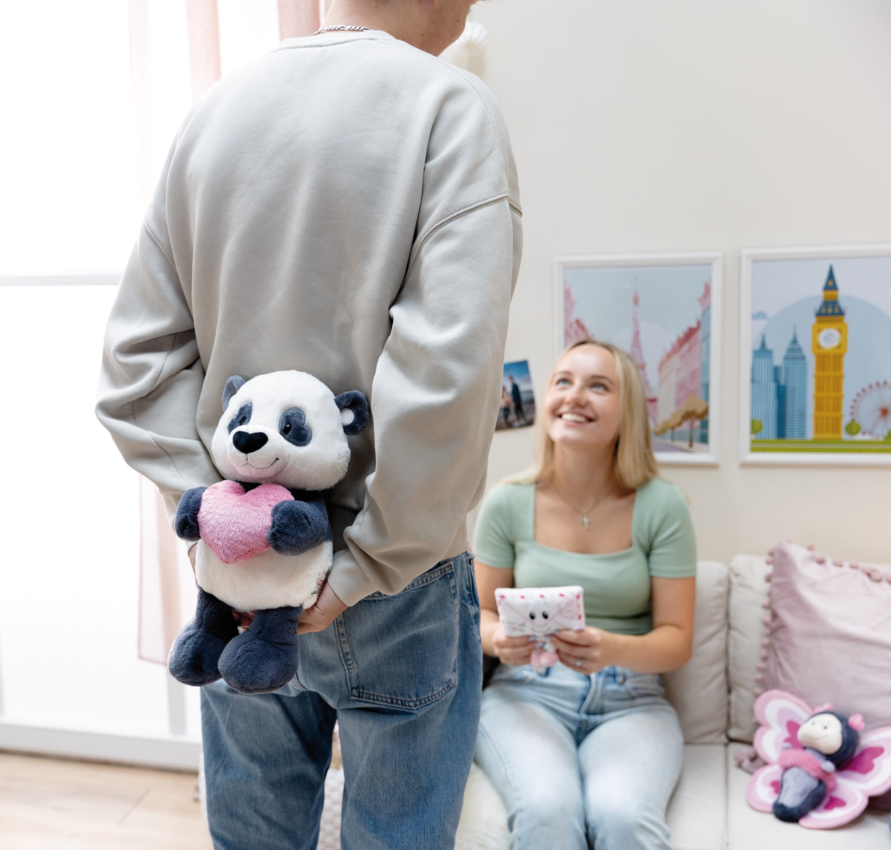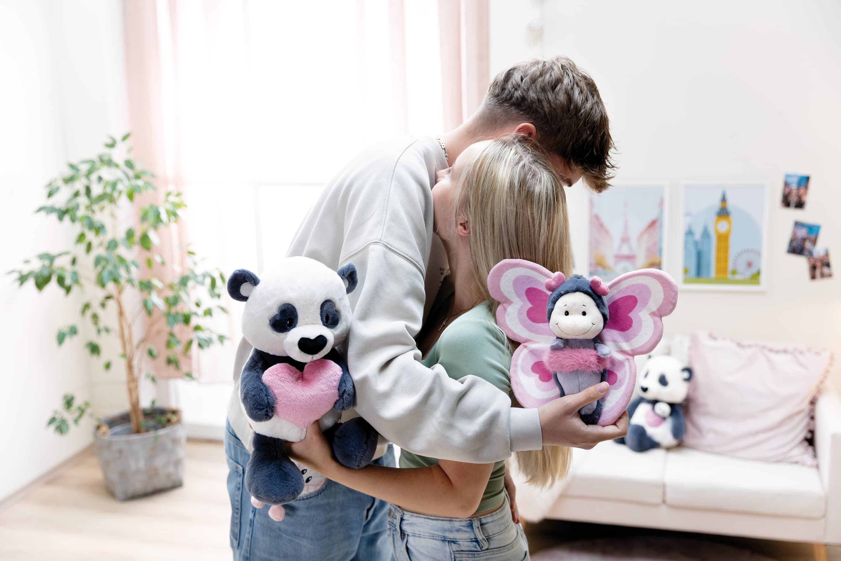 Der bezaubernde Love Panda aus der Love Classic Kollektion von NICI ist mit seinem typischen schwarz-weißen Fell aus hochwertigem, flauschig weichem NICI Plüsch ein echter Hingucker und Symbol für Liebe und Zuneigung. Mit seinem runden, weichen Körper, den herzförmig umrandeten Augen, dem süßen Gesichtsausdruck und der herzförmigen, schwarzen Nase strahlt der Panda pure Herzlichkeit und Lebensfreude aus. In seinen kleinen Händen hält er ein großes rosa Plüschherz, das seine liebevolle Botschaft perfekt unterstreicht. Ob zum Valentinstag, Geburtstag, Muttertag oder anderen besonderen Anlässen, zum Kuscheln, Einschlafen oder als Dekoration - mit diesem Panda verschenkt man ein Stückchen Liebe an Groß und Klein und macht jeden Moment zu etwas Besonderem. Der Panda ist Teil der NICI GREEN Produktwelt. Für NICI GREEN Produkte verwenden wir fast ausschließlich Plüsch- und Füllstoffe, die aus recycelten Materialien bestehen. Hierfür werden vor allem alte PET-Flaschen zu RPET verarbeitet.