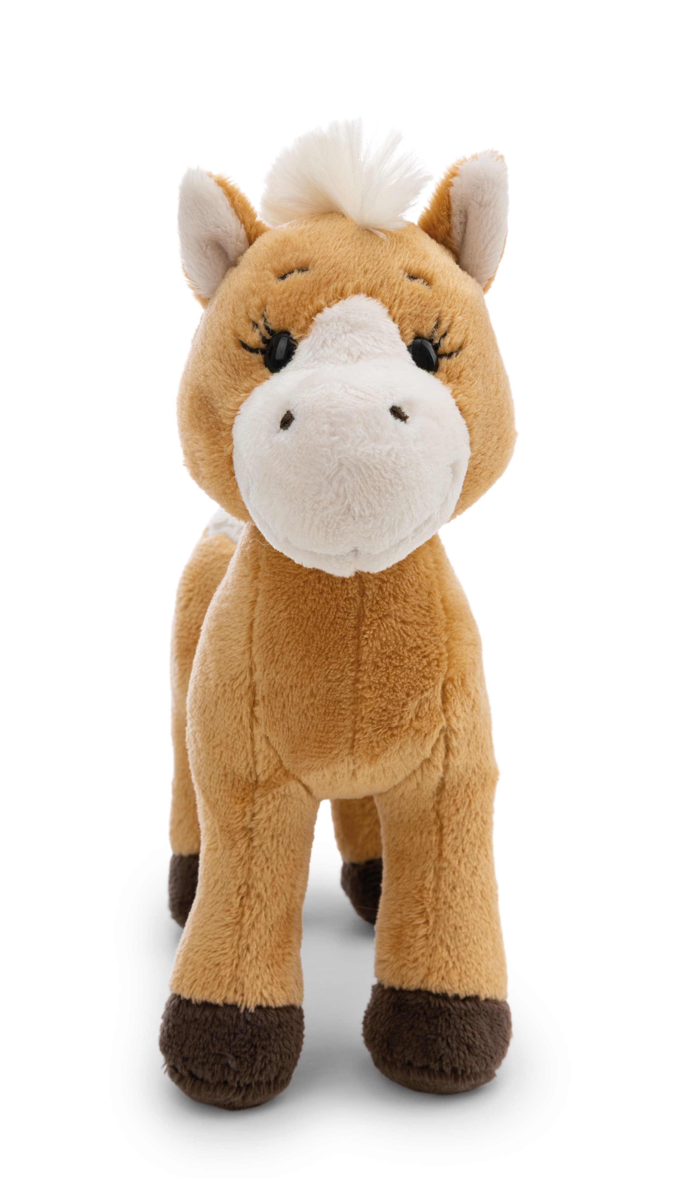 Lass dich verzaubern von Holly K.Pony - dem stehenden Pferd aus der Farm Friends Kollektion von NICI, das mit seiner majestätischen Erscheinung und seinem kuschelig weichen, hellbraunen Plüschkörper direkt in die Herzen kleiner und großer Pferdefans galoppiert. Mit ihrer wallenden Mähne, dem strahlend weißen Schweif und der charakteristischen weißen Blesse strahlt Holly eine Anmut und Eleganz aus, die jeden sofort in ihren Bann zieht. Holly ist nicht nur ein Kuscheltier, sondern eine treue Begleiterin, die die Fantasie anregt und zu unzähligen Abenteuern einlädt. Ob beim Spielen im Kinderzimmer oder beim Kuscheln vor dem Schlafengehen - Holly ist immer an der Seite und schenkt Freude und Geborgenheit. Die liebevolle Optik und Verarbeitung machen Holly K.Pony zum perfekten Geschenk für alle, die die Welt der Pferde lieben. Holly K. Pony ist Teil der NICI GREEN Produktwelt. Für NICI GREEN Produkte verwenden wir fast ausschließlich Plüsch- und Füllstoffe, die aus recycelten Materialien bestehen. Hierfür werden vor allem alte PET-Flaschen zu RPET verarbeitet