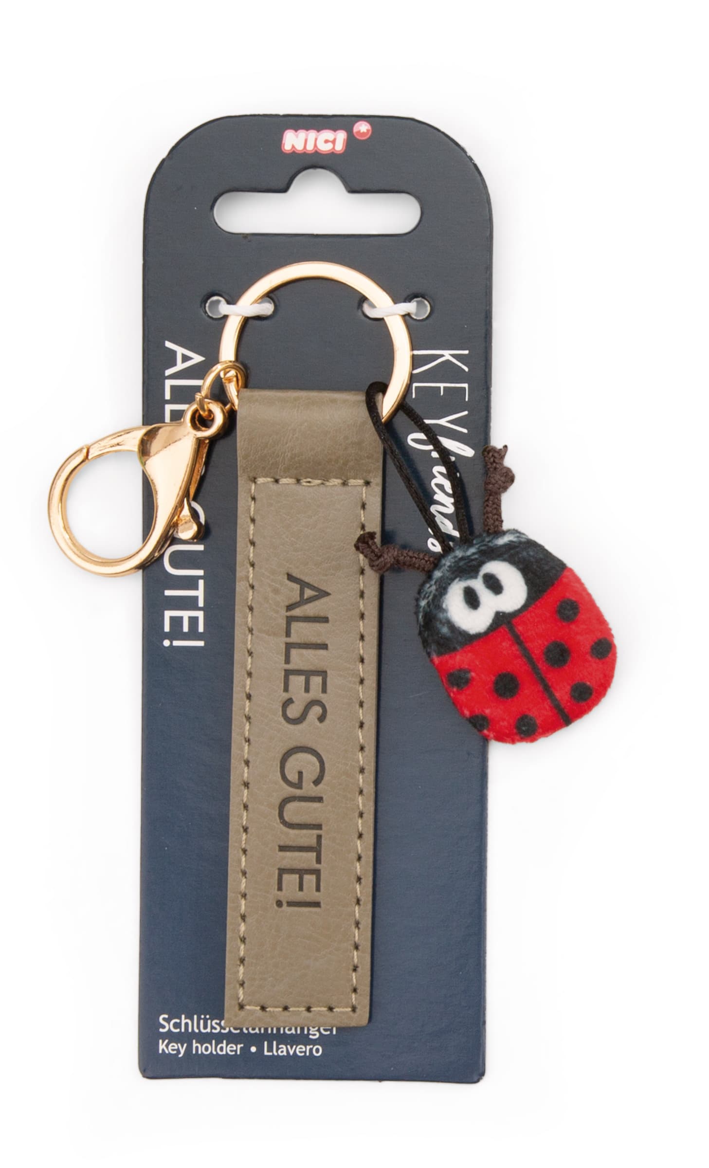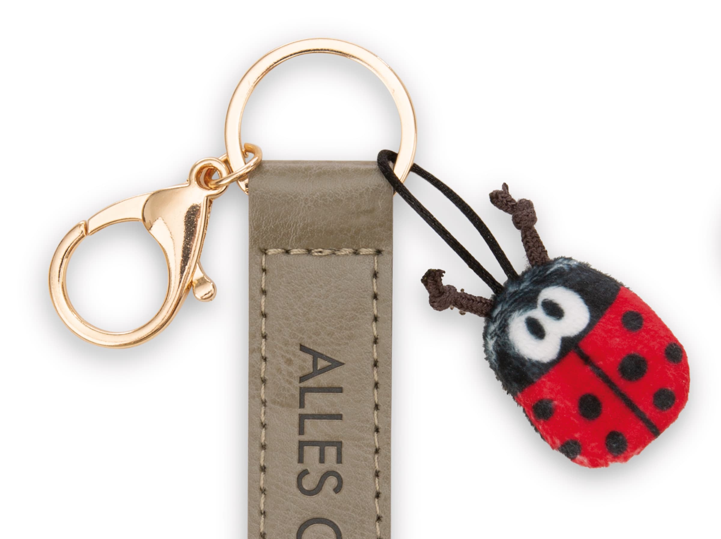Als perfekter Begleiter für den Alltag zieht der olivefarbene Schlüssel- und Taschenanhänger aus der Key Friends Kollektion von NICI alle Blicke auf sich! Der coole Anhänger mit Karabiner vereint Funktionalität mit modischem Design und ist ein echtes Fashion-Statement. Mit der geprägten Botschaft Alles Gute! auf einem hochwertigen Kunstlederband setzt der Anhänger einen echten Lifestyle-Trend. Ein kleiner, süßer Marienkäfer aus Plüsch rundet das Gesamtbild ab und zaubert einen Hauch von Verspieltheit. Ob am Schlüsselbund, Rucksack, Koffer oder als modisches Accessoire – der Key Friends Schlüssel- und Taschenanhänger verleiht jedem Look das gewisse Etwas. Ideal als liebevolles Mitbringsel für Freunde und Familie!