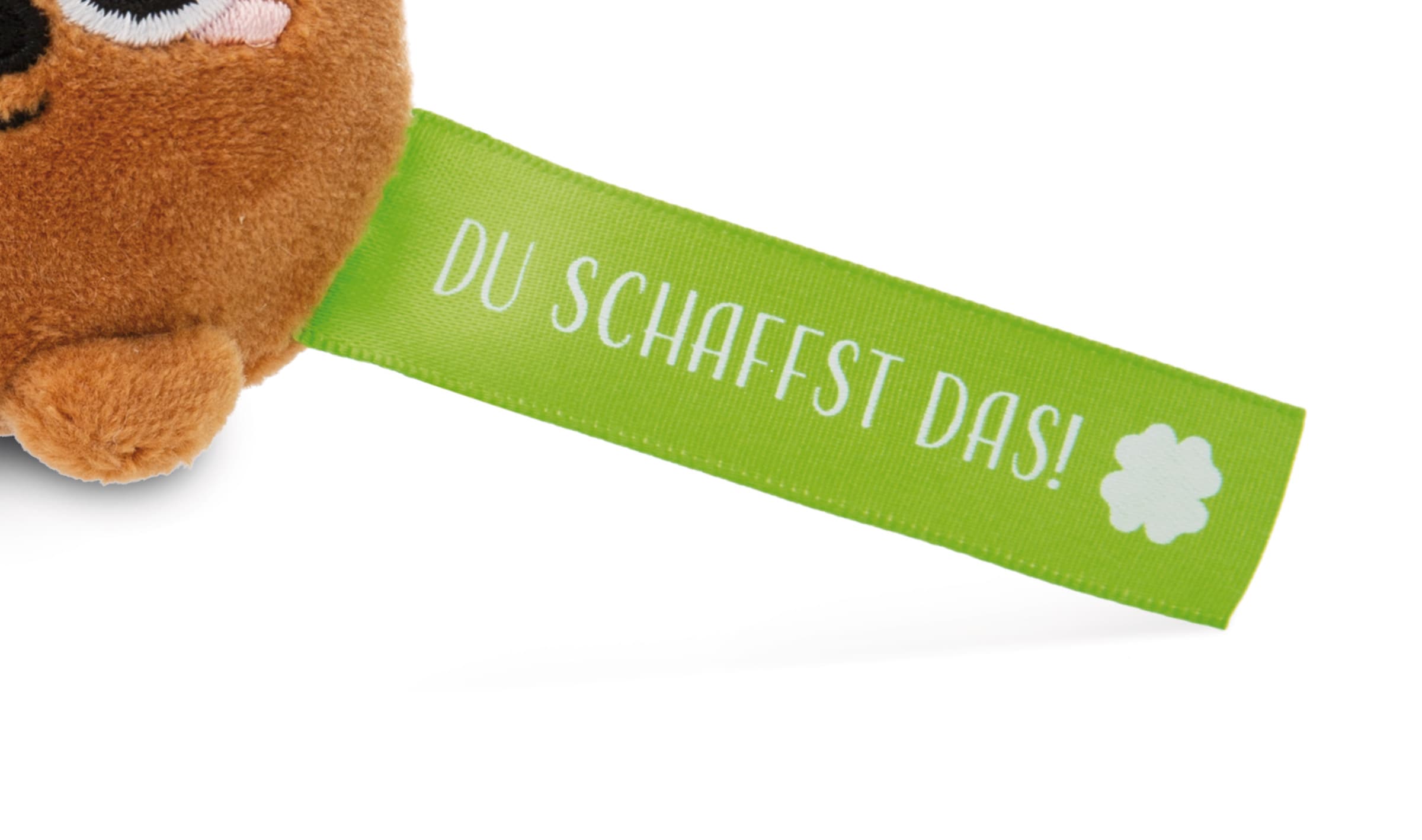 Entdecke den kleinen, kuscheligen Handschmeichler in Form eines Plüschbärs – der perfekte Motivator für jeden Tag! Mit seinem charmanten Zwinkerauge und dem grünen Spruchband, das die ermutigende Botschaft Du schaffst das! trägt, ist dieser Bär nicht nur ein süßer Blickfang, sondern auch ein treuer Begleiter, der jedem ein Lächeln ins Gesicht zaubert. Dank des stabilen Schlüsselrings aus Metall lässt sich der Plüschbär ganz einfach an Taschen, Rucksäcken oder Schlüsseln befestigen. So hat man immer einen kleinen Freund dabei, der daran erinnert, dass man alles erreichen kann, was man sich vornimmt. Ob als aufmunterndes Geschenk für einen Freund, als liebevolle Aufmerksamkeit für sich selbst oder als kleine Überraschung für einen besonderen Anlass – dieser Plüschbär-Anhänger bringt Freude und positive Energie in jeden Alltag.