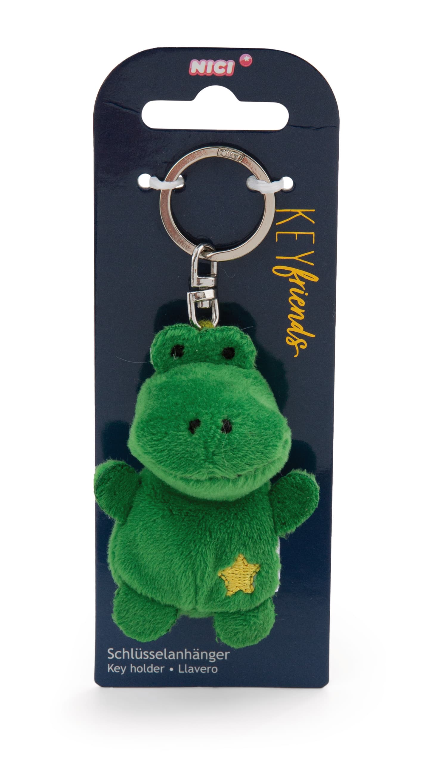 Mit dem Frosch Schlüsselanhänger aus der Key Friends Kollektion von NICI wird der Alltag ein bisschen flauschiger! Der zauberhafte Anhänger mit stabilem Metallschlüsselring ist nicht nur ein echter Hingucker, sondern lässt sich auch mühelos an Schulranzen, Handtaschen oder Rucksäcken befestigen - perfekt für Kinder und Erwachsene! Der grüne Frosch besticht durch sein weiches Plüschmaterial und den aufgestickten gelben Stern, der für Hoffnung und Orientierung steht. Ob als süßes Mitbringsel oder als persönliches Geschenk - der Frosch Plüschanhänger sorgt für strahlende Gesichter.
