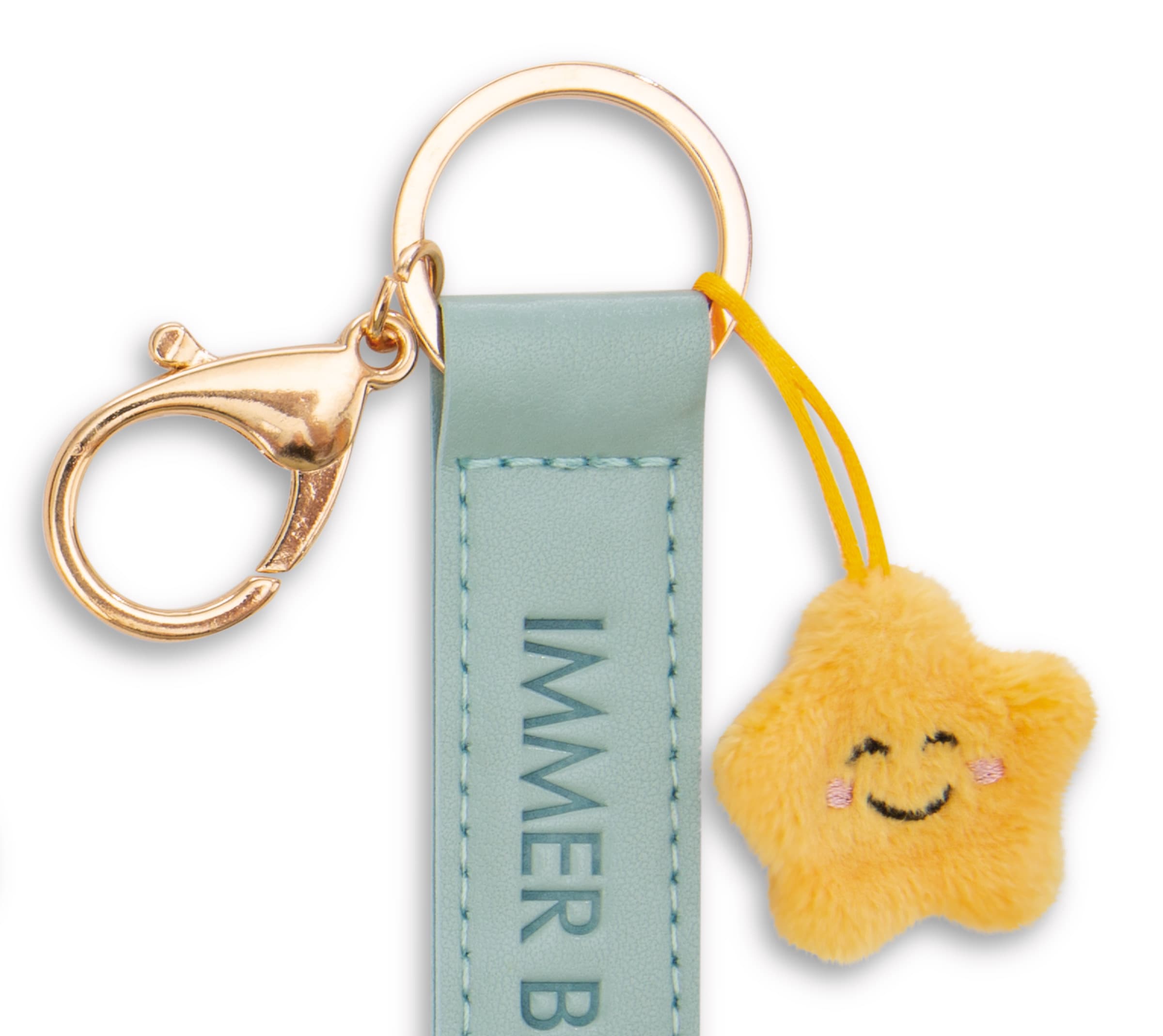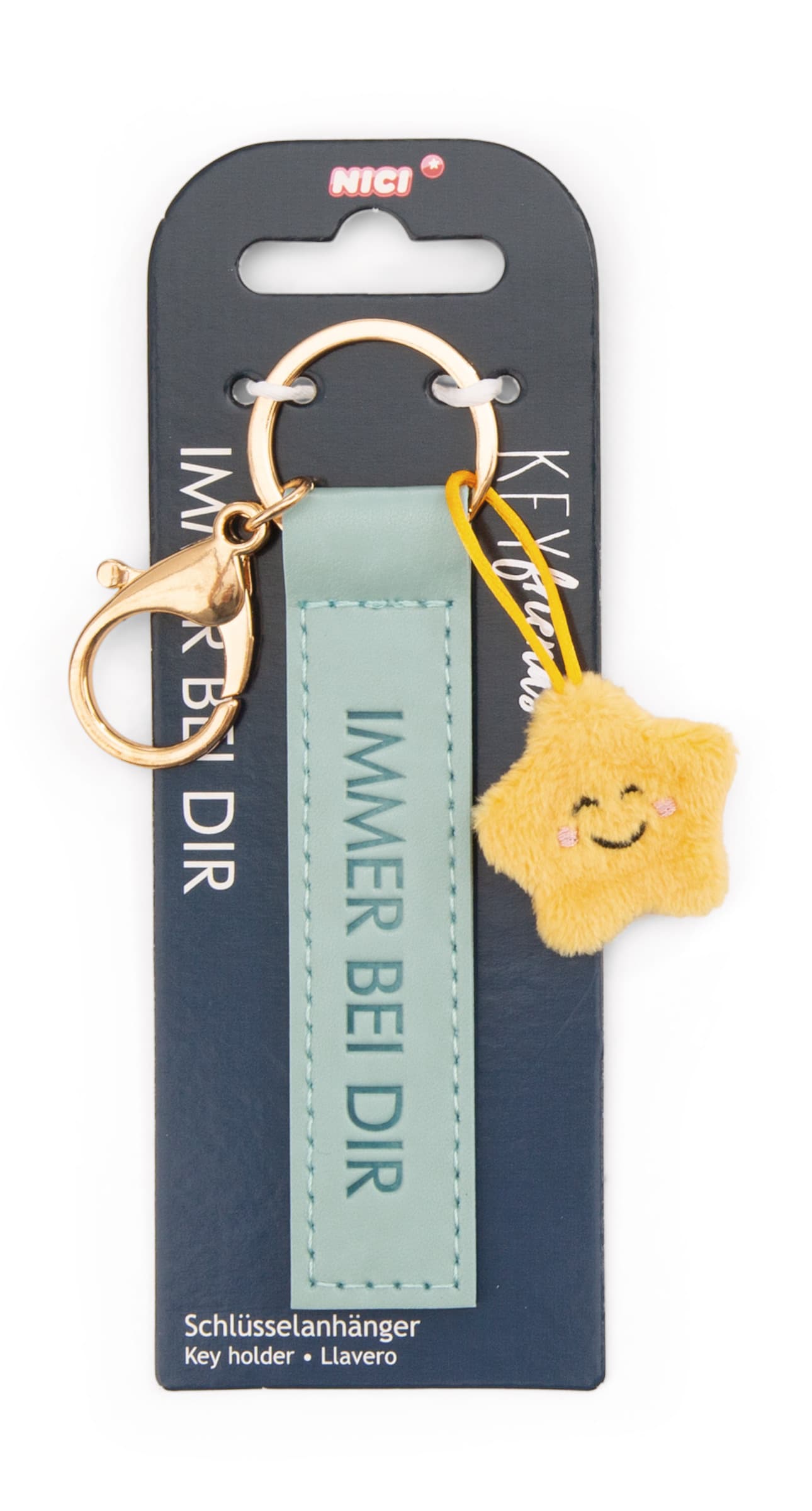 Als perfekter Begleiter für den Alltag zieht der türkisfarbene Schlüssel- und Taschenanhänger aus der Key Friends Kollektion von NICI alle Blicke auf sich! Der coole Anhänger mit Karabiner vereint Funktionalität mit modischem Design und ist ein echtes Fashion-Statement. Mit der geprägten Botschaft Immer bei dir auf einem hochwertigen Kunstlederband setzt der Anhänger einen echten Lifestyle-Trend. Ein kleiner, gelber Stern aus Plüsch rundet das Gesamtbild ab und zaubert einen Hauch von Verspieltheit. Ob am Schlüsselbund, Rucksack, Koffer oder als modisches Accessoire – der Key Friends Schlüssel- und Taschenanhänger verleiht jedem Look das gewisse Etwas. Ideal als liebevolles Mitbringsel für Freunde und Familie!