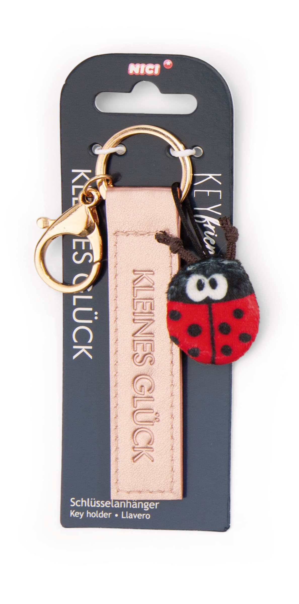 Als perfekter Begleiter für den Alltag zieht der Schlüssel- und Taschenanhänger in Roségold aus der Key Friends Kollektion von NICI alle Blicke auf sich! Der coole Anhänger mit Karabiner vereint Funktionalität mit modischem Design und ist ein echtes Fashion-Statement. Mit der geprägten Botschaft Kleines Glück auf einem hochwertigen Kunstlederband setzt der Anhänger einen echten Lifestyle-Trend. Ein kleiner, süßer Marienkäfer aus Plüsch rundet das Gesamtbild ab und zaubert einen Hauch von Verspieltheit. Ob am Schlüsselbund, Rucksack, Koffer oder als modisches Accessoire – der Key Friends Schlüssel- und Taschenanhänger verleiht jedem Look das gewisse Etwas. Ideal als liebevolles Mitbringsel für Freunde und Familie!
