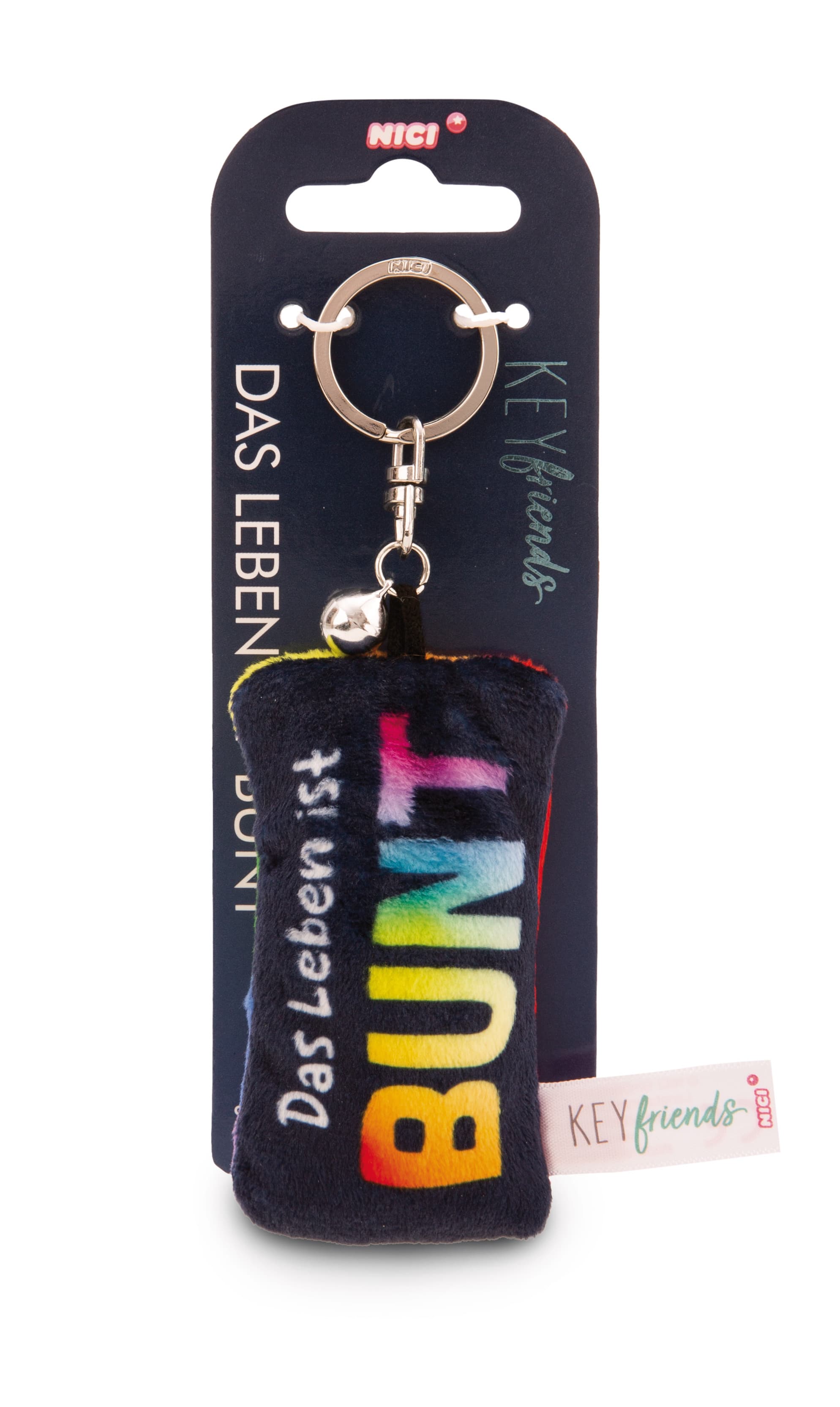 Farbe und Spaß in den Alltag bringt der stylische Taschen- und Schlüsselanhänger in Mini-Plüschkissen-Format, der aus flauschig weichem NICI Plüschmaterial gefertigt ist und mit einem kleinen Glöckchen überrascht. Der Plüschanhänger aus der Key Friends Kollektion von NICI ist nicht nur ein praktisches Accessoire, sondern auch Handschmeichler und Eyecatcher. Die ausgefallene Form des coolen Lifestyle Schlüsselanhängers begeistert mit seinem fröhlichen Regenbogen Design und dem motivierenden Statement Das Leben ist bunt. Mit seinem stabilen Schlüsselring lässt sich der Anhänger mühelos an Taschen, Rucksäcken oder Schlüsseln befestigen – perfekt für den täglichen Gebrauch! Ob als Geschenk für Freunde, Familie oder sich selbst - der charmante Plüschanhänger ist das ideale Geschenk für jedes Alter, Geschlecht und jeden Anlass.