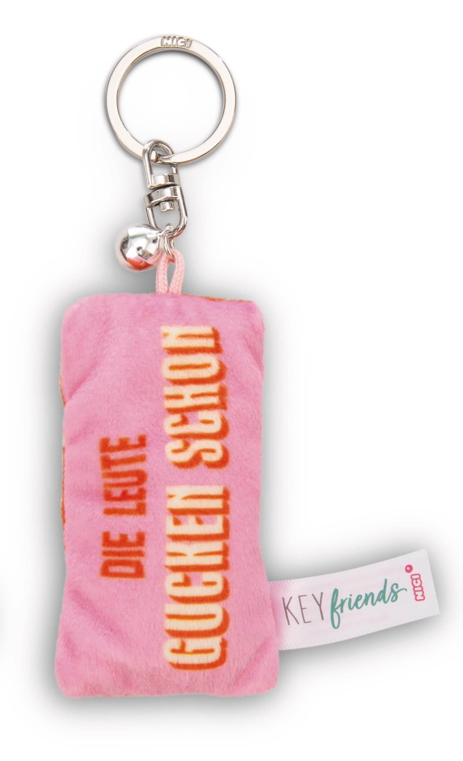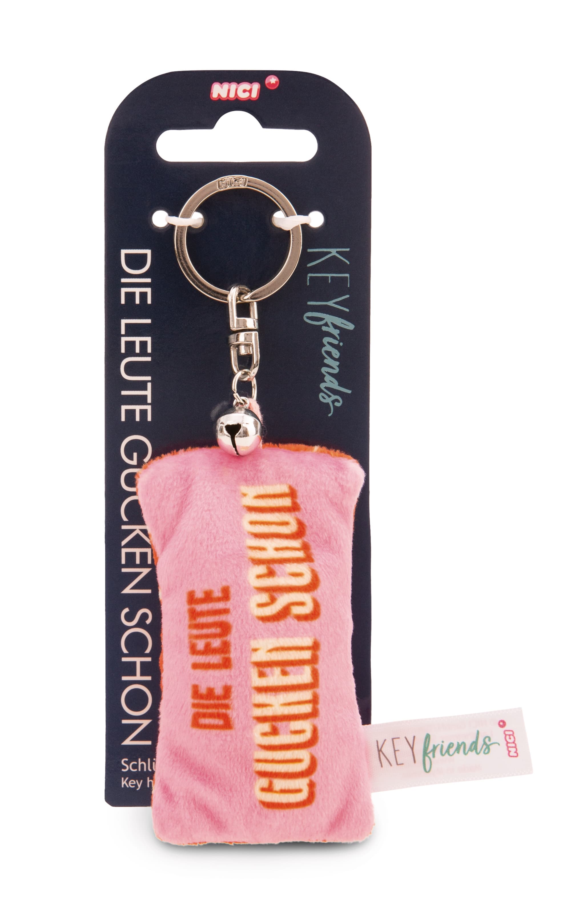 Farbe und Spaß in den Alltag bringt der stylische Taschen- und Schlüsselanhänger in Mini-Plüschkissen-Format, der aus flauschig weichem NICI Plüschmaterial gefertigt ist und mit einem kleinen Glöckchen überrascht. Der Plüschanhänger aus der Key Friends Kollektion von NICI ist nicht nur ein praktisches Accessoire, sondern auch Handschmeichler und Eyecatcher. Die ausgefallene Form des coolen Lifestyle Schlüsselanhängers begeistert mit seinem rosa Design und dem witzigen Statement Die Leute gucken schon. Mit seinem stabilen Schlüsselring lässt sich der Anhänger mühelos an Taschen, Rucksäcken oder Schlüsseln befestigen – perfekt für den täglichen Gebrauch! Ob als Geschenk für Freunde, Familie oder sich selbst - der charmante Plüschanhänger ist das ideale Geschenk für jedes Alter, Geschlecht und jeden Anlass.