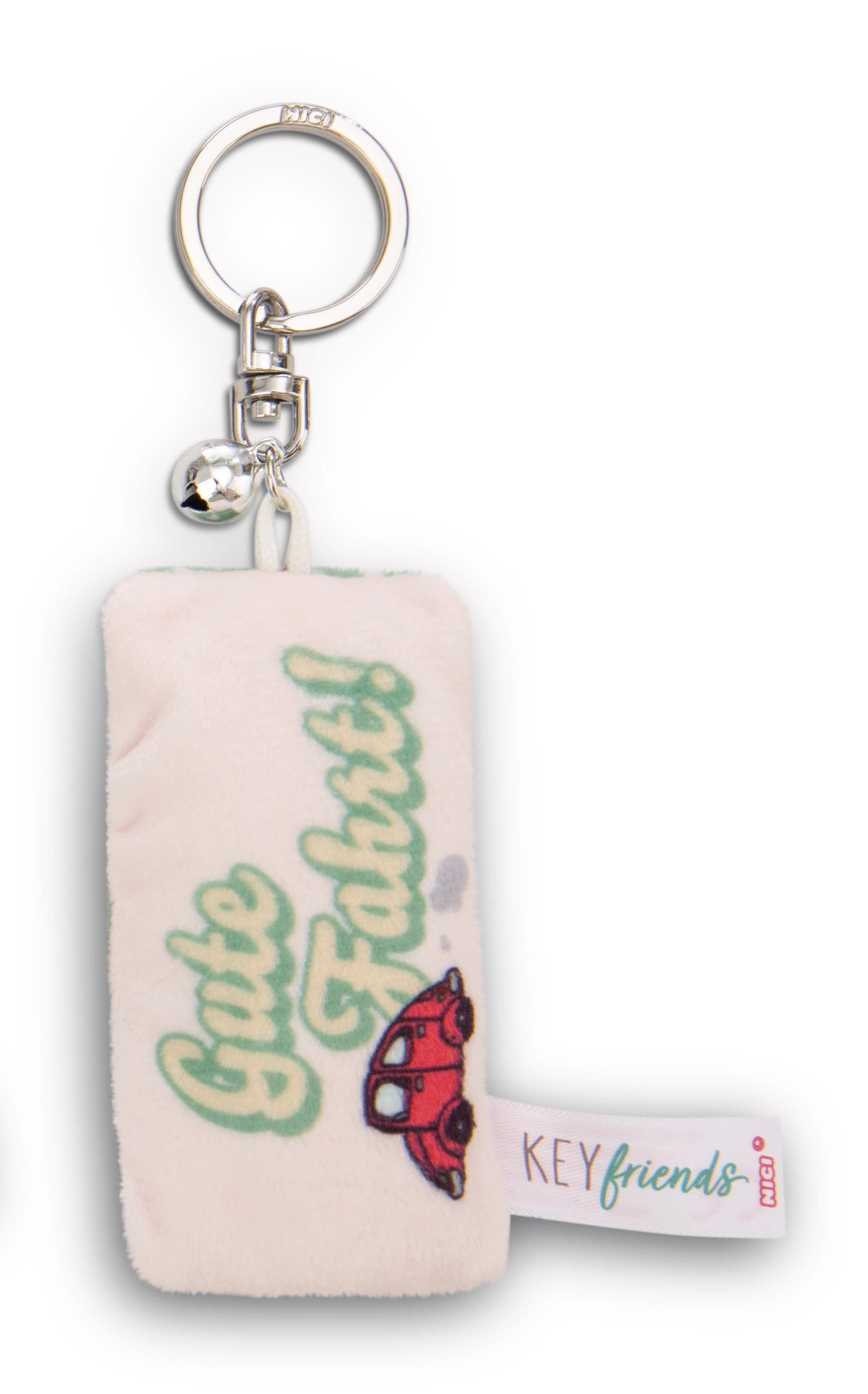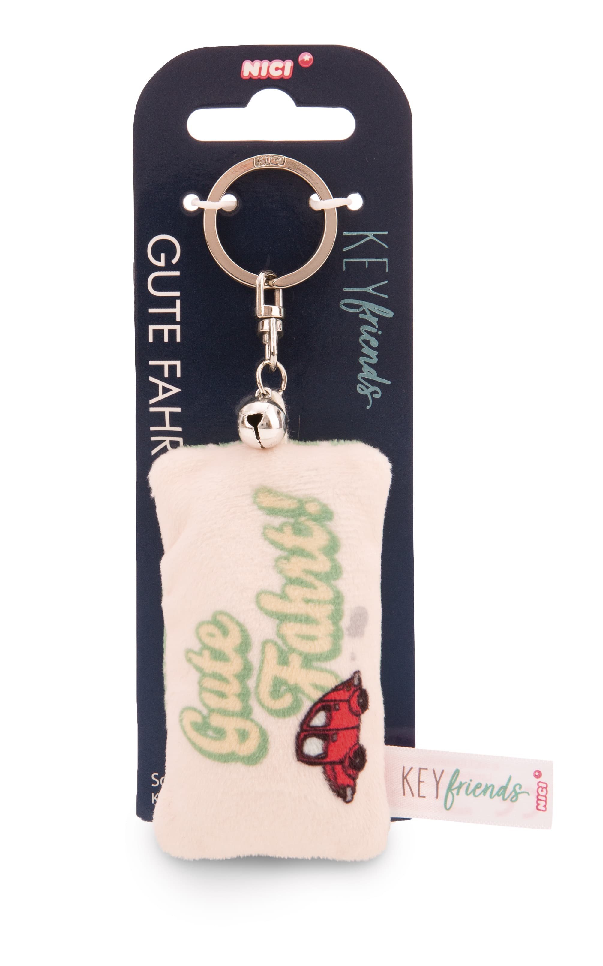 Farbe und Spaß in den Alltag bringt der stylische Taschen- und Schlüsselanhänger in Mini-Plüschkissen-Format, der aus flauschig weichem NICI Plüschmaterial gefertigt ist und mit einem kleinen Glöckchen überrascht. Der Plüschanhänger aus der Key Friends Kollektion von NICI ist nicht nur ein praktisches Accessoire, sondern auch Handschmeichler und Eyecatcher. Die ausgefallene Form des coolen Lifestyle Schlüsselanhängers begeistert mit seinem lustigen Design und dem liebenswerten Statement Gute Fahrt!. Mit seinem stabilen Schlüsselring lässt sich der Anhänger mühelos an Taschen, Rucksäcken oder Schlüsseln befestigen – perfekt für den täglichen Gebrauch! Ob als Geschenk für Freunde, Familie oder sich selbst - der charmante Plüschanhänger ist das ideale Geschenk für die bestandene Führerscheinprüfung, das neue Auto oder vor einer Reise!
