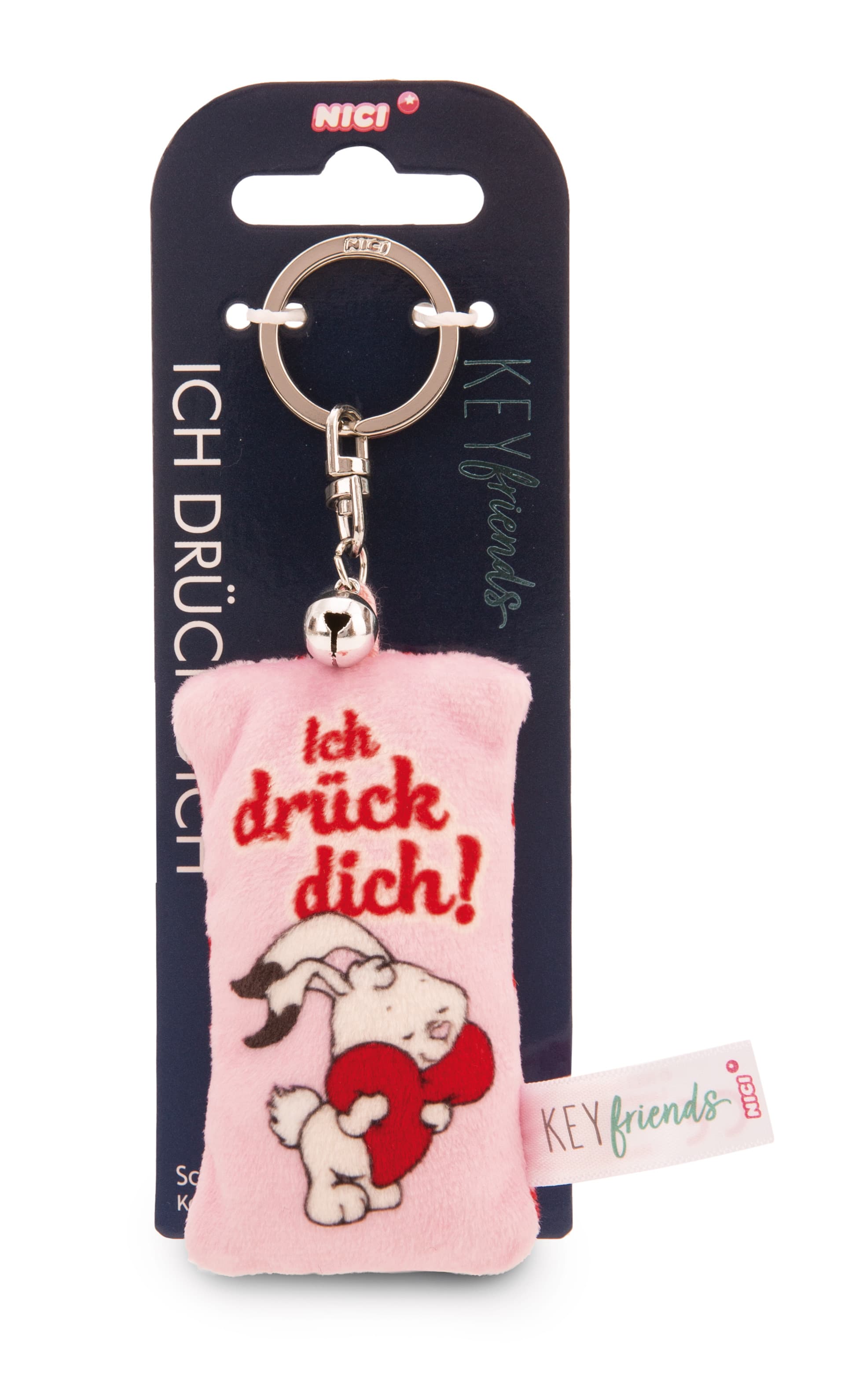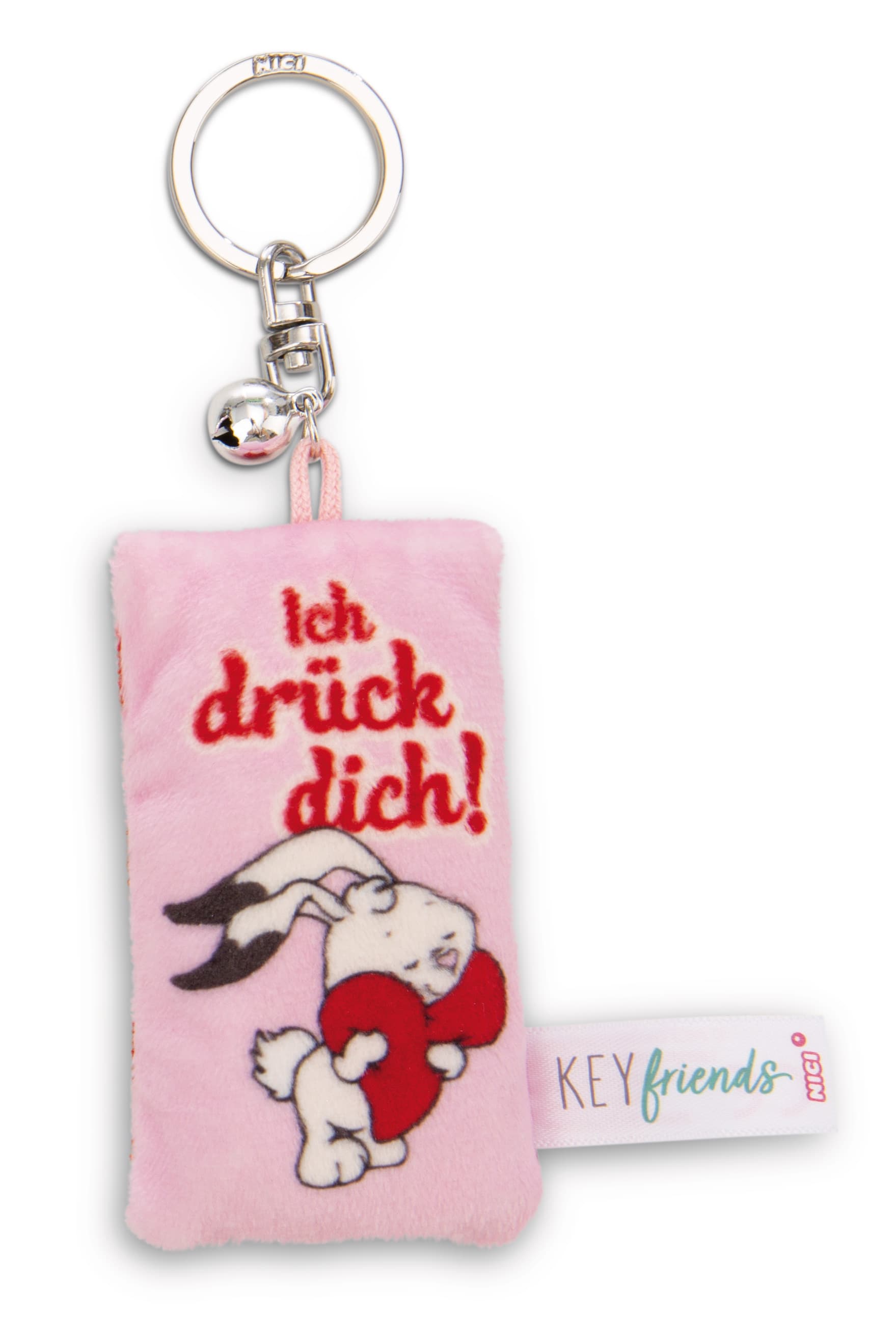 Farbe und Spaß in den Alltag bringt der stylische Taschen- und Schlüsselanhänger in Mini-Plüschkissen-Format, der aus flauschig weichem NICI Plüschmaterial gefertigt ist und mit einem kleinen Glöckchen überrascht. Der Plüschanhänger aus der Key Friends Kollektion von NICI ist nicht nur ein praktisches Accessoire, sondern auch Handschmeichler und Eyecatcher. Die ausgefallene Form des coolen Lifestyle Schlüsselanhängers begeistert mit seinem herzigen Design und dem liebevollen Statement Ich drück dich!. Mit seinem stabilen Schlüsselring lässt sich der Anhänger mühelos an Taschen, Rucksäcken oder Schlüsseln befestigen – perfekt für den täglichen Gebrauch! Ob als Geschenk für Freunde, Familie oder sich selbst - der charmante Plüschanhänger ist das ideale Geschenk für jedes Alter, Geschlecht und jeden Anlass.