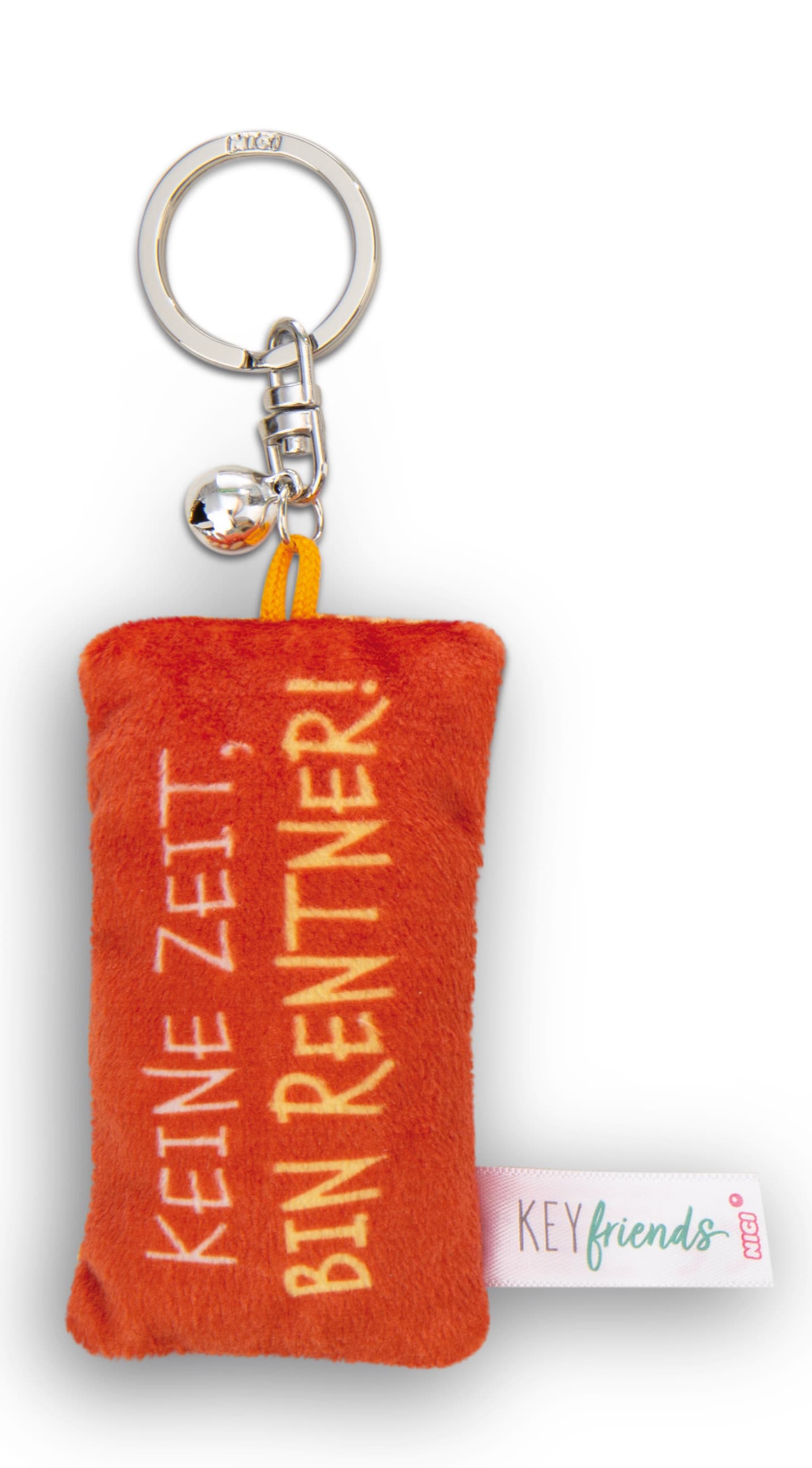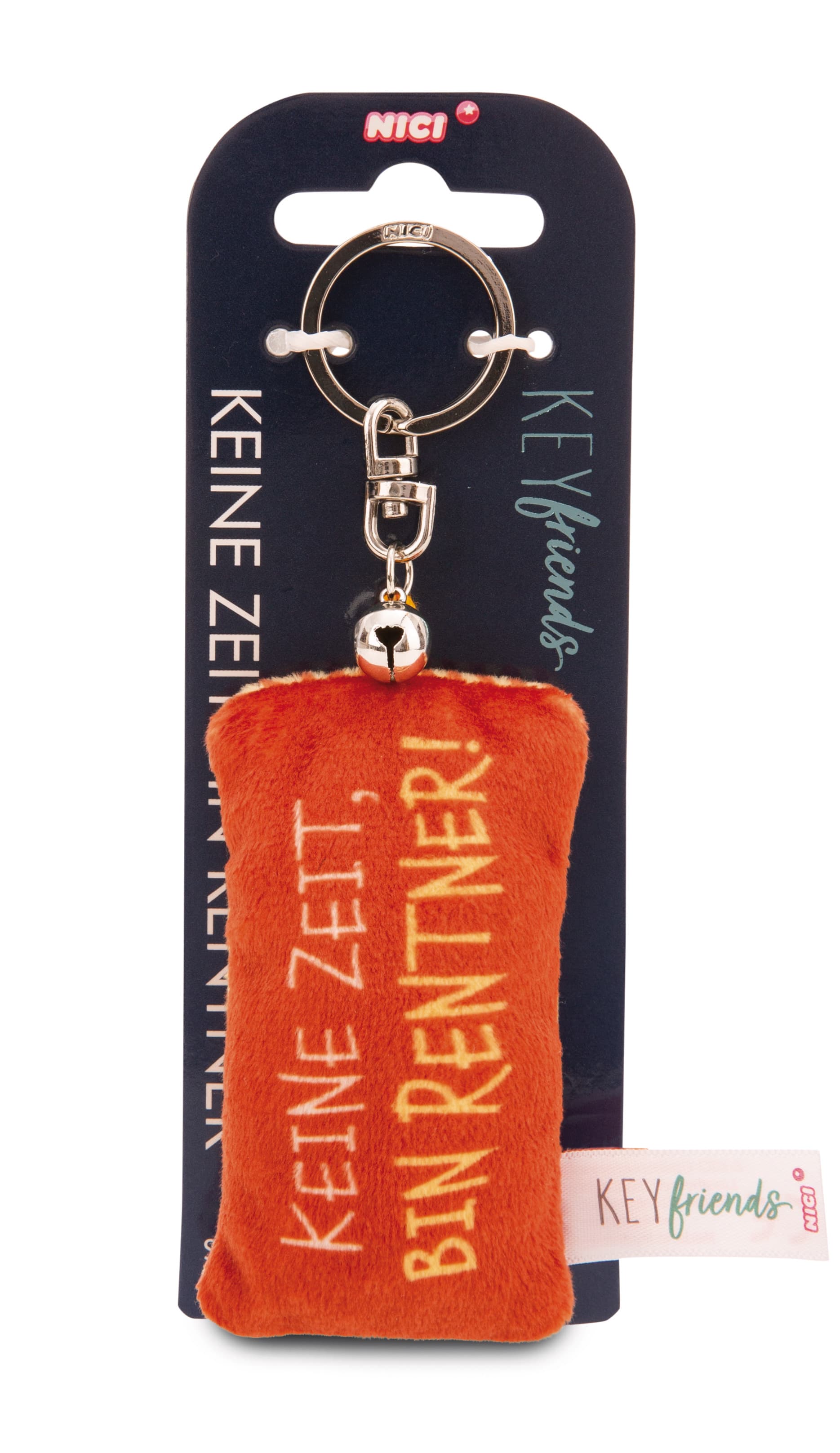 Farbe und Spaß in den Alltag bringt der stylische Taschen- und Schlüsselanhänger in Mini-Plüschkissen-Format, der aus flauschig weichem NICI Plüschmaterial gefertigt ist und mit einem kleinen Glöckchen überrascht. Der Plüschanhänger aus der Key Friends Kollektion von NICI ist nicht nur ein praktisches Accessoire, sondern auch Handschmeichler und Eyecatcher. Die ausgefallene Form des coolen Lifestyle Schlüsselanhängers begeistert mit seinem farbenfrohen Design und dem witzigen Statement Keine Zeit, bin Rentner!. Mit seinem stabilen Schlüsselring lässt sich der Anhänger mühelos an Taschen, Rucksäcken oder Schlüsseln befestigen – perfekt für den täglichen Gebrauch! Ob als Geschenk für Freunde, Familie oder sich selbst - der charmante Plüschanhänger ist das ideale Geschenk für Ruheständler.