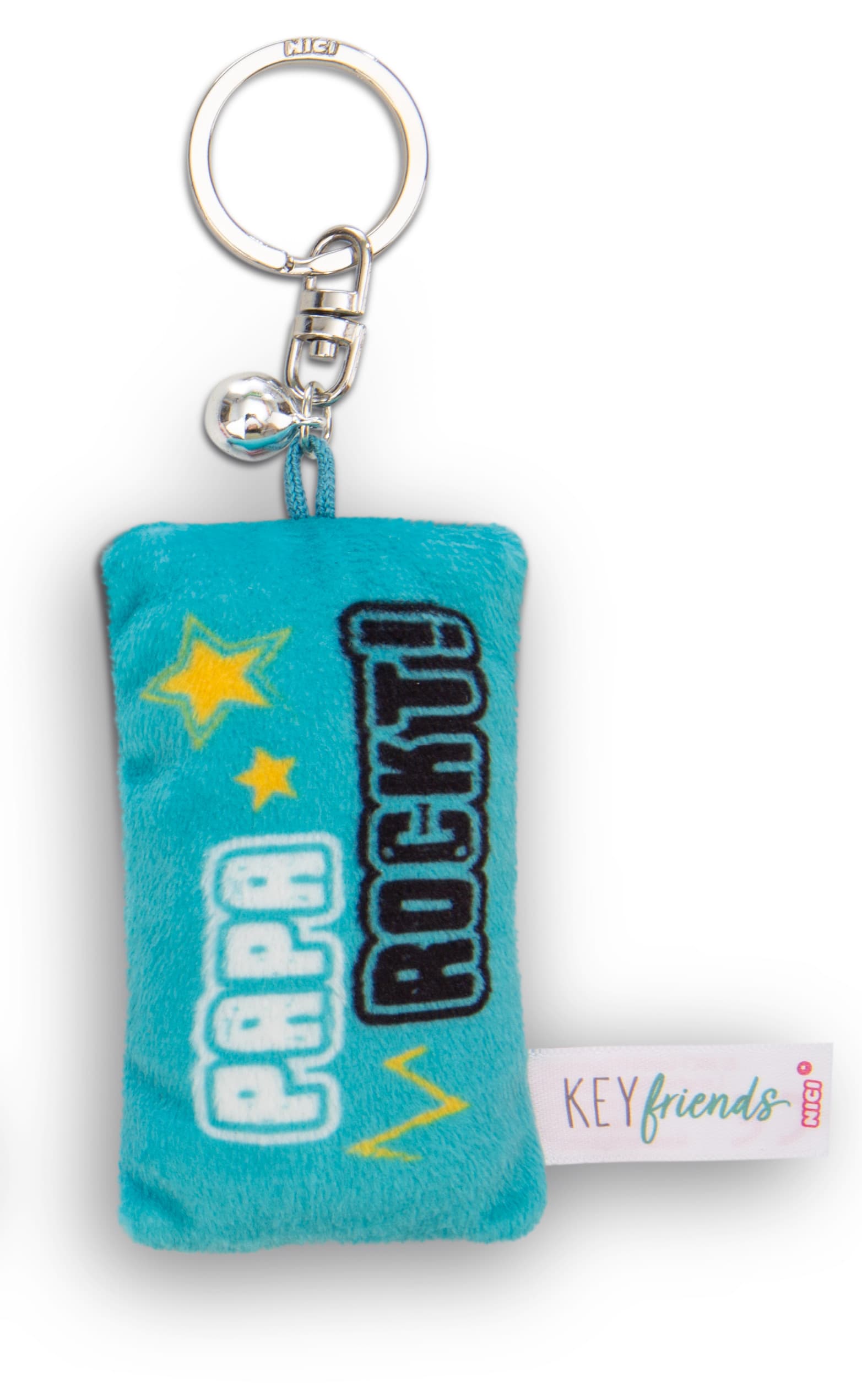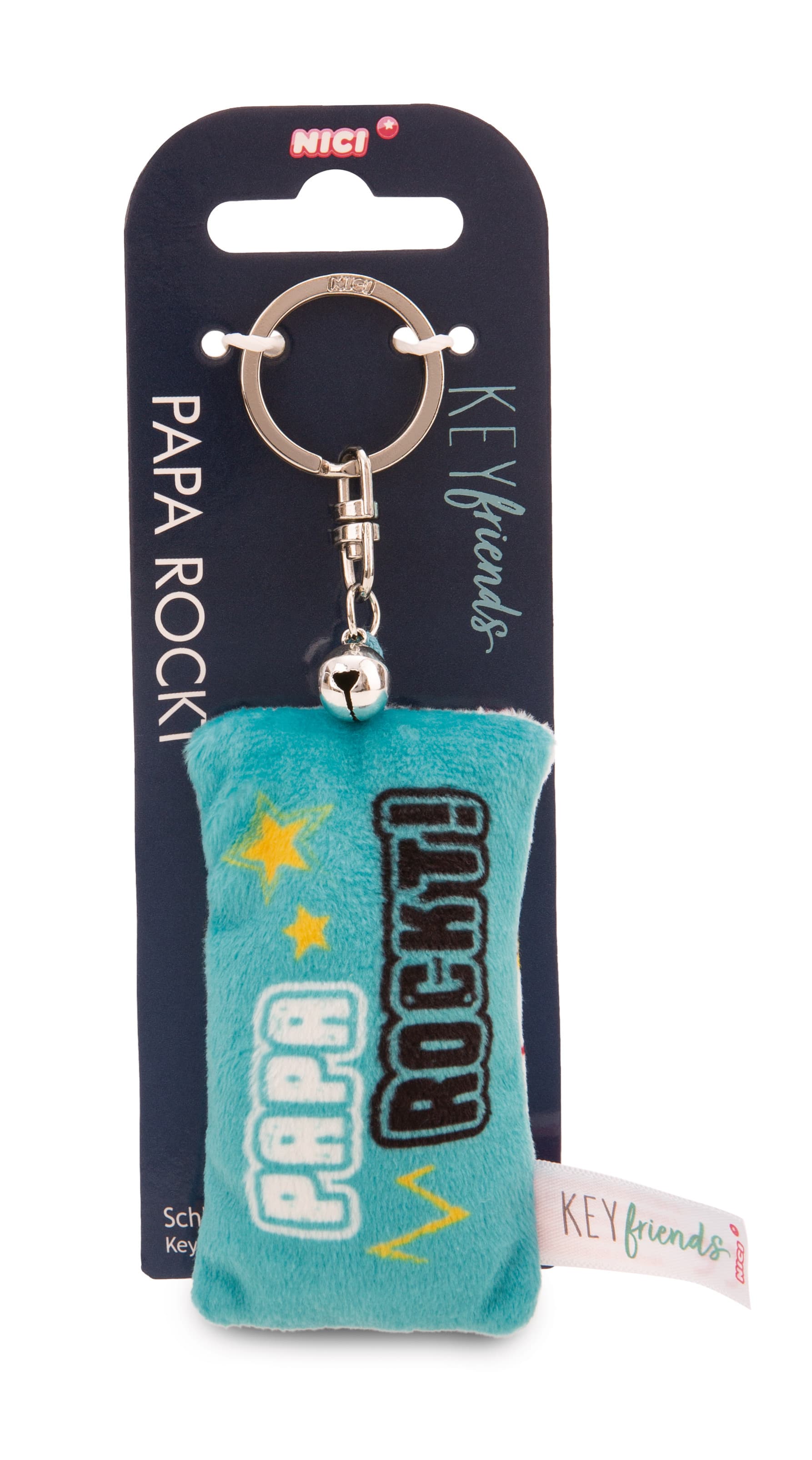 Farbe und Spaß in den Alltag bringt der stylische Taschen- und Schlüsselanhänger in Mini-Plüschkissen-Format, der aus flauschig weichem NICI Plüschmaterial gefertigt ist und mit einem kleinen Glöckchen überrascht. Der Plüschanhänger aus der Key Friends Kollektion von NICI ist nicht nur ein praktisches Accessoire, sondern auch Handschmeichler und Eyecatcher. Die ausgefallene Form des coolen Lifestyle Schlüsselanhängers begeistert mit seinem farbenfrohen Design und dem witziges Statement Papa rockt!. Mit seinem stabilen Schlüsselring lässt sich der Anhänger mühelos an Taschen, Rucksäcken oder Schlüsseln befestigen – perfekt für den täglichen Gebrauch! Ob als Geschenk für Freunde, Familie oder sich selbst - der charmante Plüschanhänger ist das ideale Geschenk für jeden Vater.