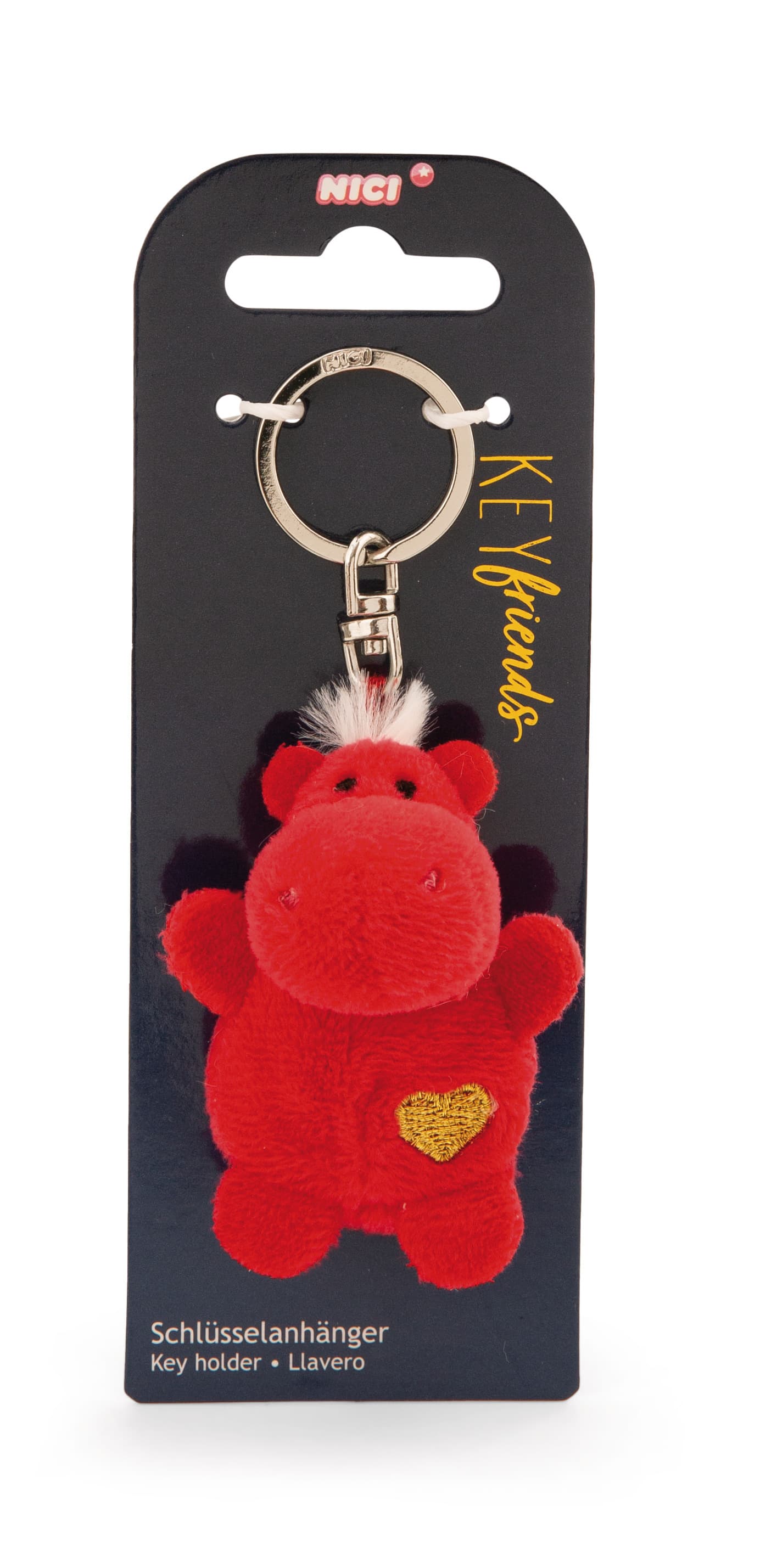 Mit dem Nilpferd Schlüsselanhänger aus der Key Friends Kollektion von NICI wird der Alltag ein bisschen flauschiger! Der zauberhafte Anhänger mit stabilem Metallschlüsselring ist nicht nur ein echter Hingucker, sondern lässt sich auch mühelos an Schulranzen, Handtaschen oder Rucksäcken befestigen - perfekt für Kinder und Erwachsene! Das rote Nilpferd besticht durch sein weiches Plüschmaterial und das goldene, gestickte Herz-Symbol, das für Liebe, Freundschaft und Zuneigung steht. Ob als süßes Mitbringsel oder als persönliches Geschenk - der Nilpferd Plüschanhänger sorgt für strahlende Gesichter.