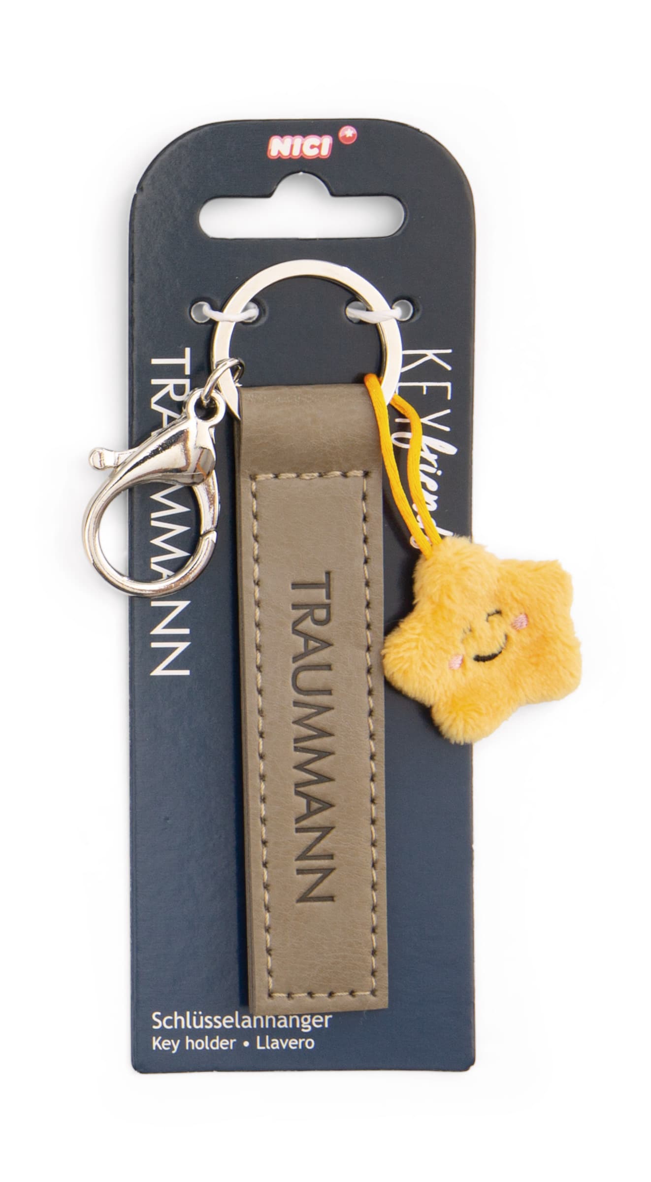 Als perfekter Begleiter für den Alltag zieht der olivefarbene Schlüssel- und Taschenanhänger aus der Key Friends Kollektion von NICI alle Blicke auf sich! Der coole Anhänger mit Karabiner vereint Funktionalität mit modischem Design und ist ein echtes Fashion-Statement. Mit der geprägten Botschaft Traummann auf einem hochwertigen Kunstlederband setzt der Anhänger einen echten Lifestyle-Trend. Ein kleiner, gelber Stern aus Plüsch rundet das Gesamtbild ab und zaubert einen Hauch von Verspieltheit. Ob am Schlüsselbund, Rucksack, Koffer oder als modisches Accessoire – der Key Friends Schlüssel- und Taschenanhänger verleiht jedem Look das gewisse Etwas. Ideal als liebevolles Geschenk für den besten Ehemann, Lebenspartner oder Freund!