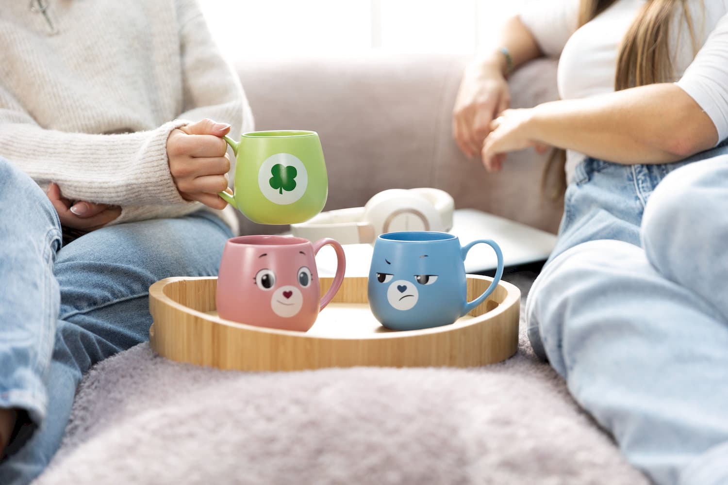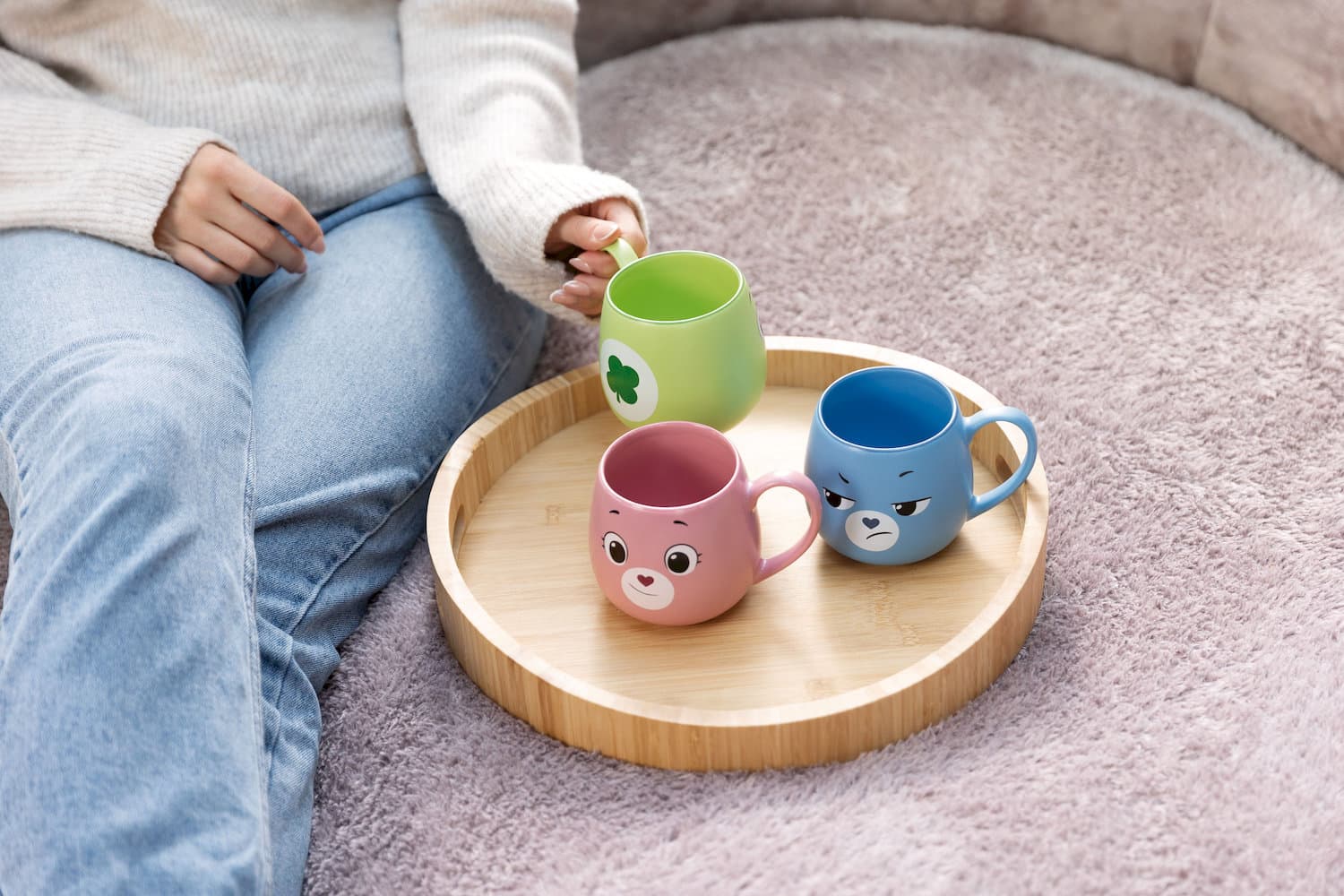 Es ist okay, auch mal schlechte Laune zu haben! Mit der blauen Porzellantasse im mürrischen Brummbärchen-Design mit einer dunklen Regenwolke auf der Rückseite kann man seine Stimmung auf passende Weise ausdrücken. Aber bekanntlich folgt auf Regen Sonnenschein, und nach einer Tasse Kaffee, Tee oder Kakao sieht die Welt gleich viel freundlicher aus. Die bauchige Tasse mit einem Inhaltsvolumen von 400ml ist ein zauberhaftes Geschenk nicht nur für alle kleinen und großen Glücksbärchi-Fans und -Sammler. Sie ist spülmaschinenfest und mikrowellengeeignet.