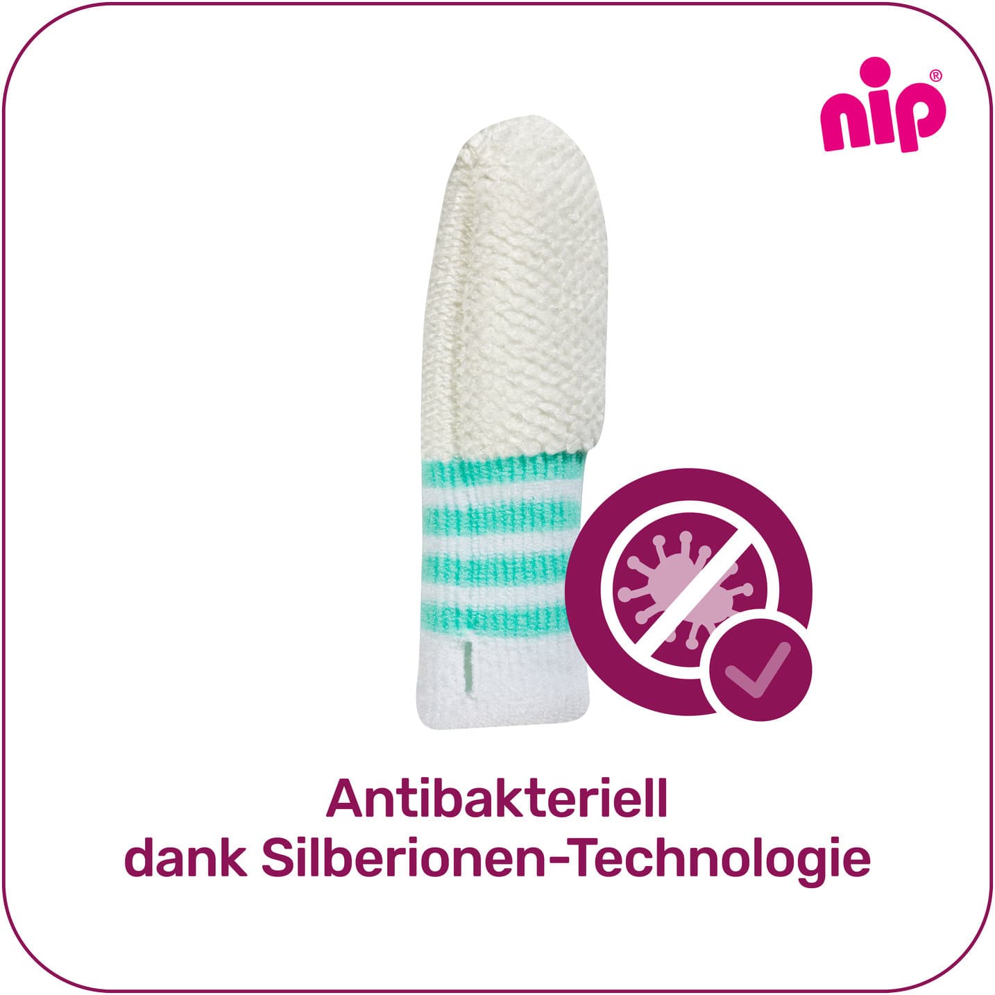 Der Mundpflege-Fingerling von nip ermöglicht eine sanfte Reinigung des empfindlichen Mundraums von Babys und Kleinkindern, bereits vor dem Durchbruch der ersten Zähnchen.