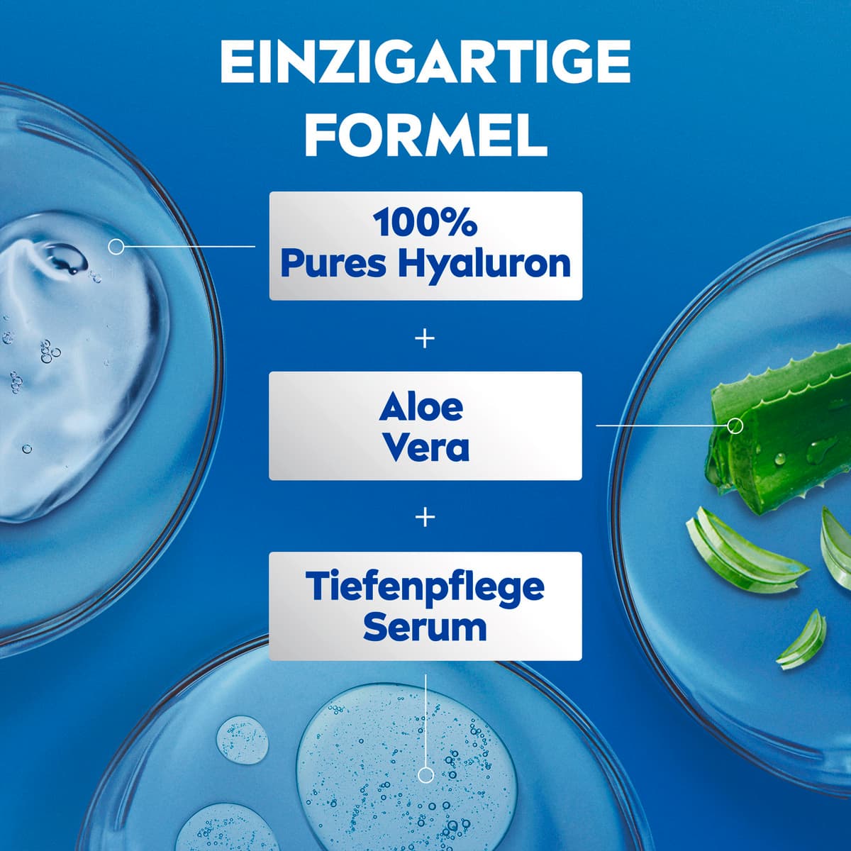 - Formel mit purem Hyaluron, Aloe Vera und NIVEA Tiefenpflege Serum
