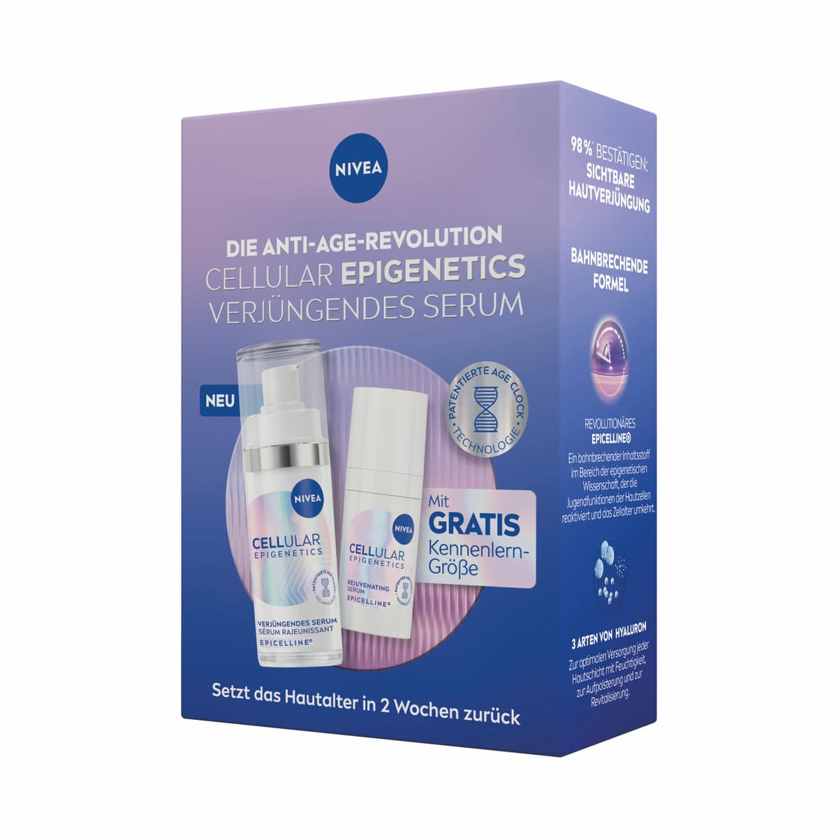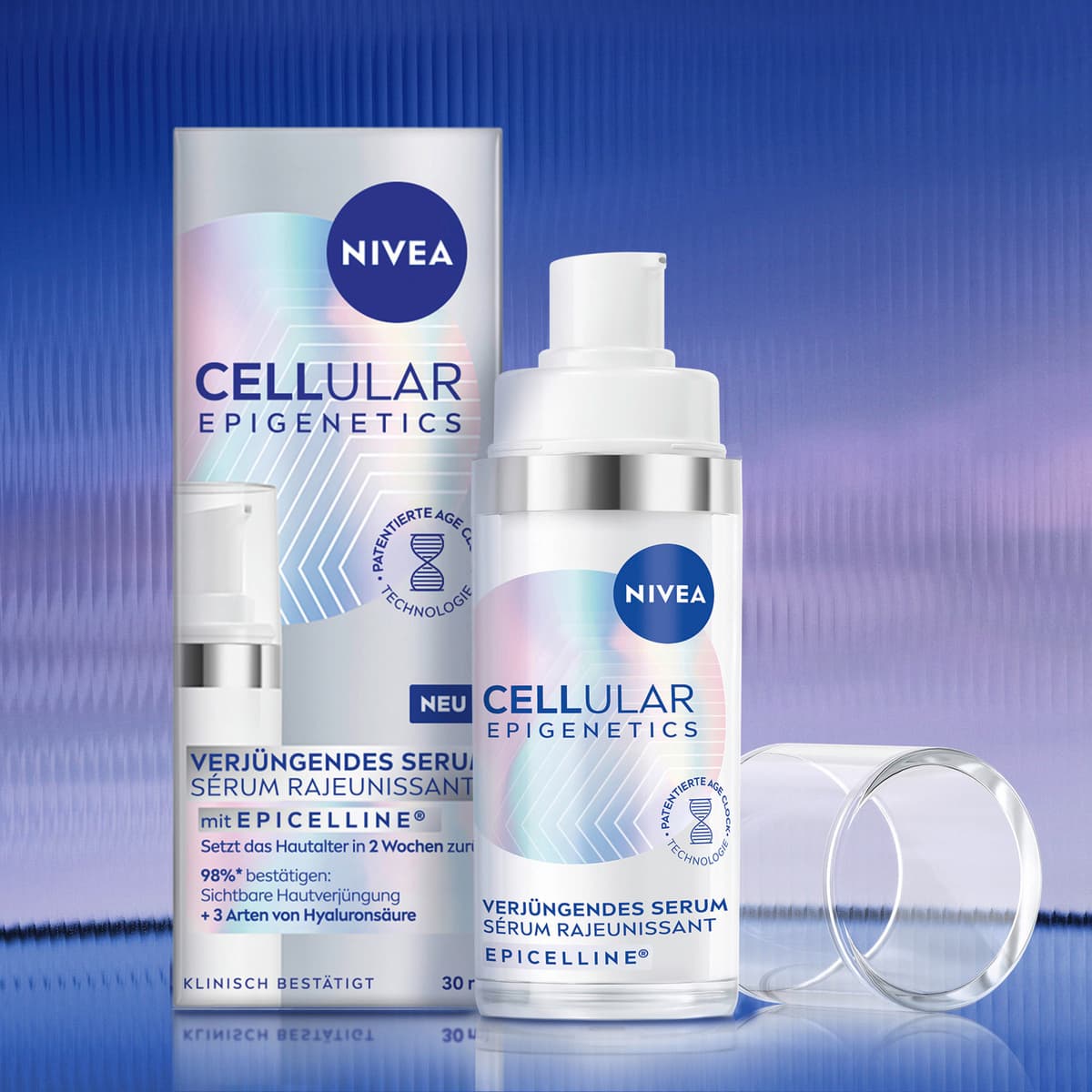 Das Cellular Epigenetics Verjüngendes Serum ist ein effektives Serum, das für ein strahlenderes, aufgepolsterteres und jugendlicheres Aussehen sorgt. Nach 15 Jahren intensiver Forschung an 50.000 getesteten Wirkstoffen hat NIVEA Epicelline® entdeckt - einen bahnbrechenden Inhaltsstoff im Bereich der epigenetischen Wissenschaft, der die Jugendfunktionen der Hautzellen reaktiviert und das Zellalter umkehrt. Wissenschaftlich nachgewiesen durch die patentierte Age Clock Technologie, reduziert er das Hautalter innerhalb von 2 Wochen. Zusammen mit drei Arten von Hyaluronsäure ist das Serum die neueste Innovation von NIVEA im Anti-Ageing Bereich. Mit seiner effektiven Formel setzt es 10 Zeichen der Hautalterung** zurück und ist für alle Hauttypen geeignet.