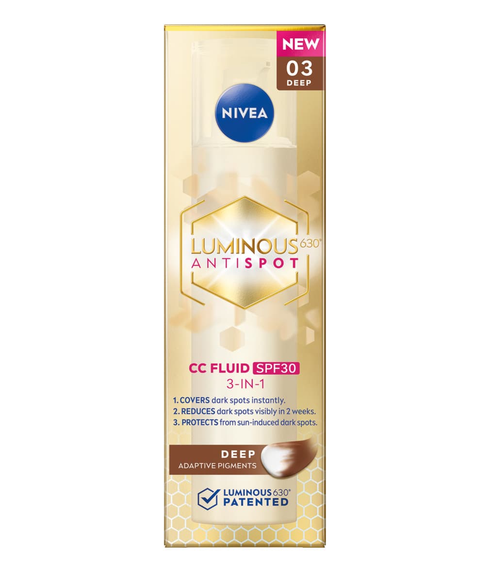 Das Luminous630 CC Fluid kaschiert, reduziert and schützt vor Pigmentflecken - sichtbare Ergebnisse in 2 Wochen. Mit mikroverkapselten Farbpigmenten, die sich dem Hautton anpassen. Für eine ebenmäßige, strahlende Haut mit makellosem Teint.